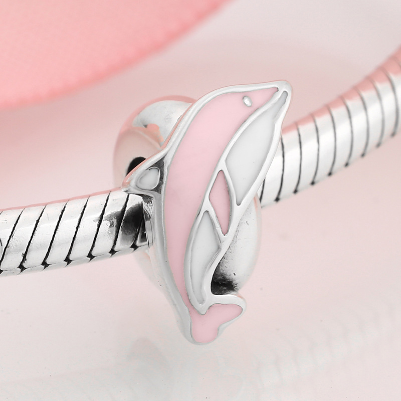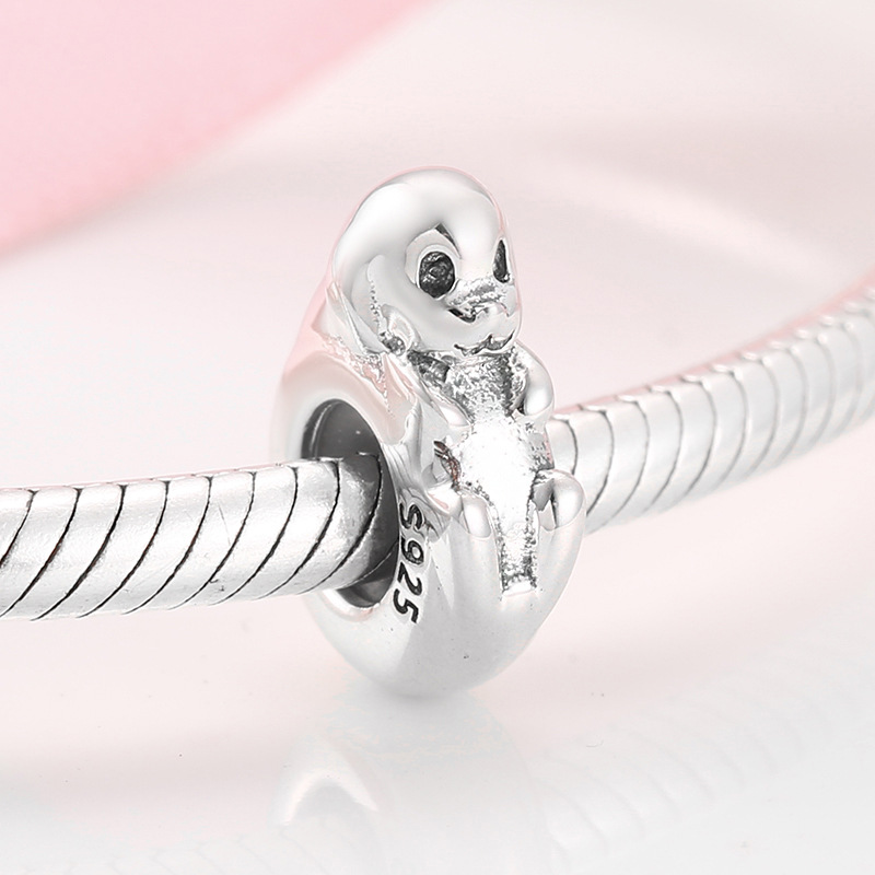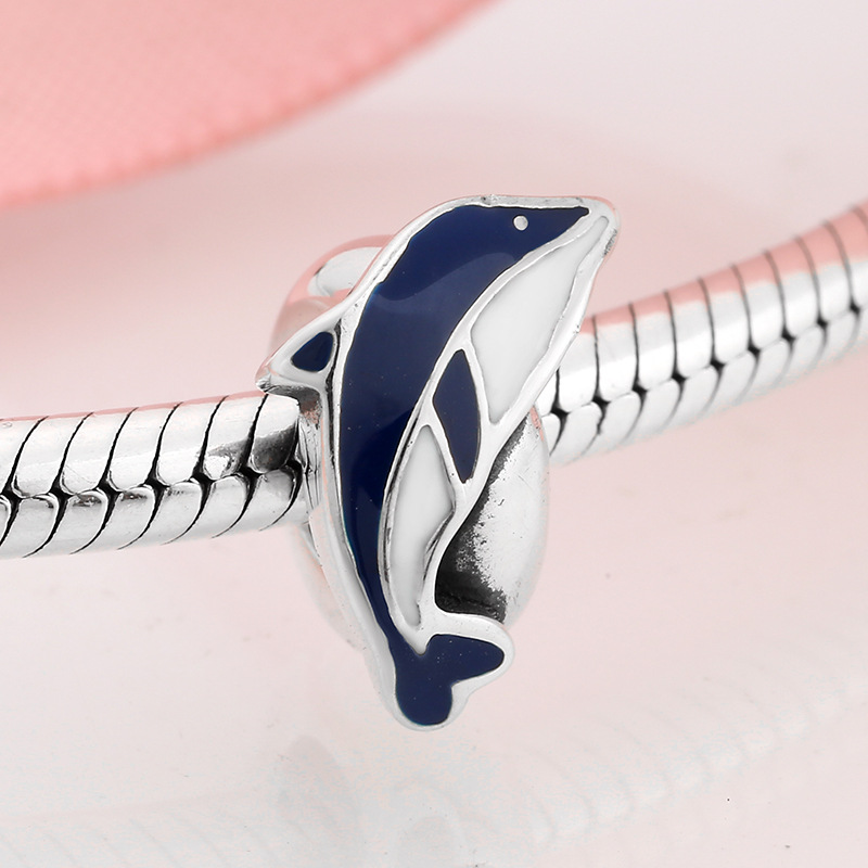 Cat Dolphin Animal Spacer S925 Sterling Silver Lady Bracelet Necklace Diy Bead