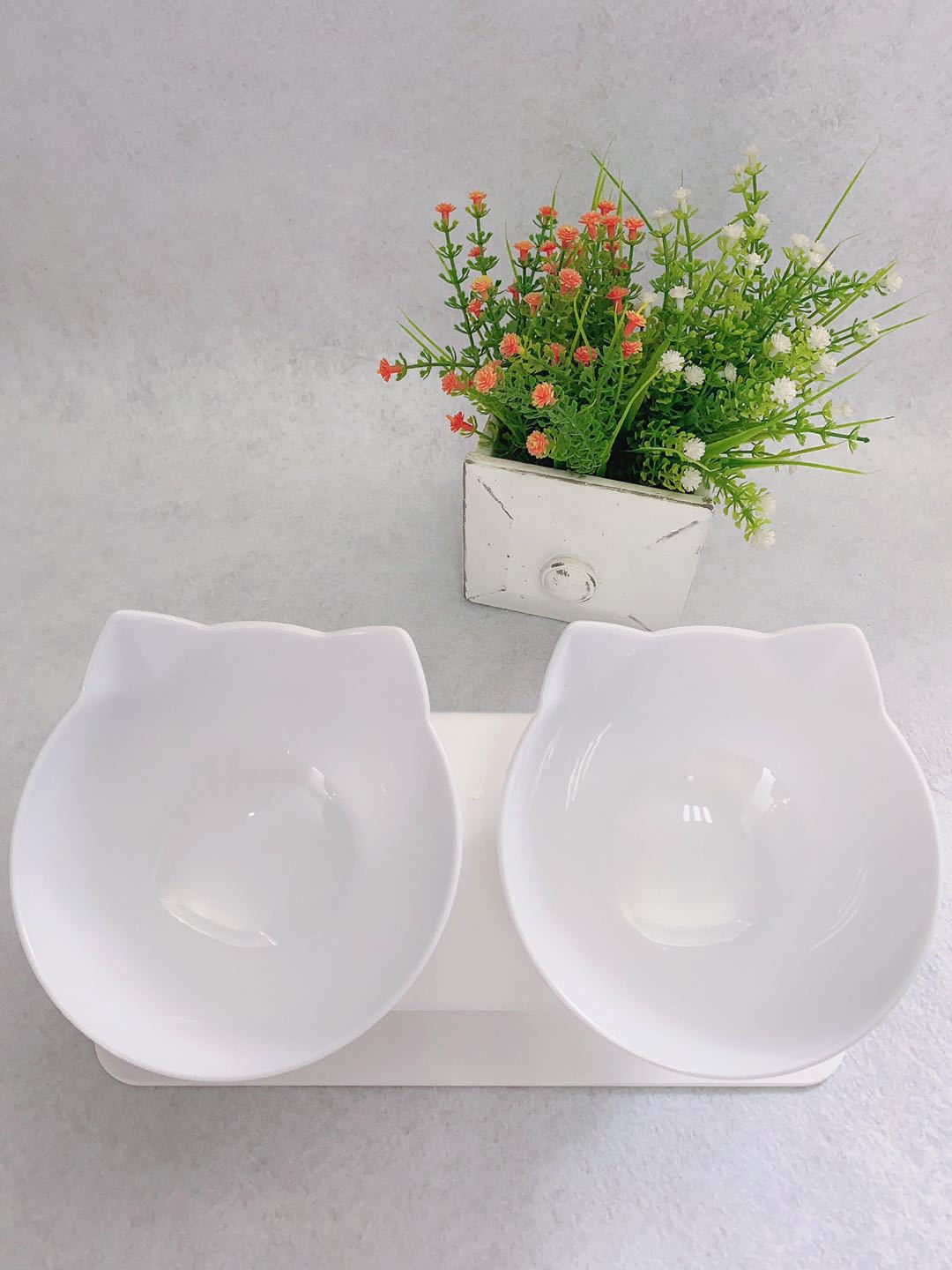 3、Two bowls with cute cat face, you can eat and drink at one time