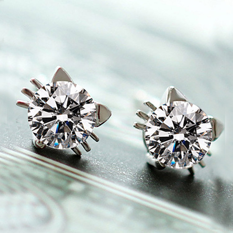 Cat Face S9265 Sterling Silver Stud Earrings