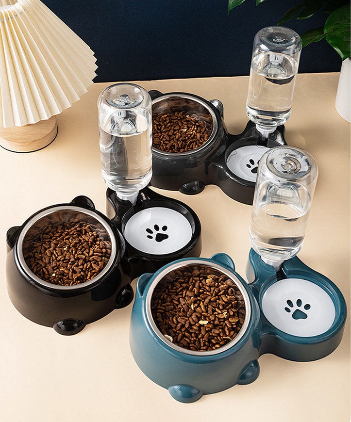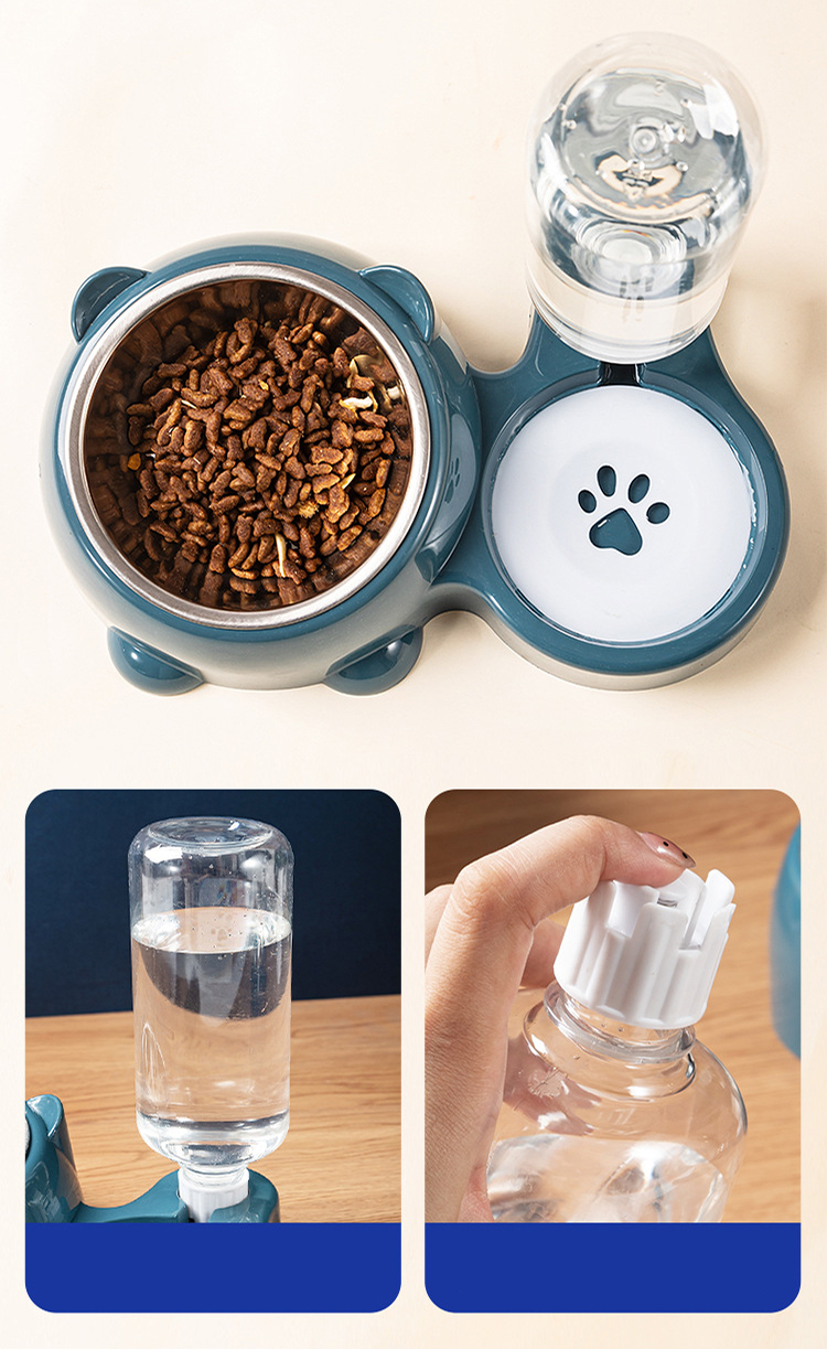 The water bowl is 9.5cm wide/the bowl + the water bottle is 21cm high.