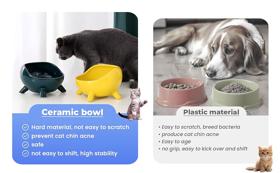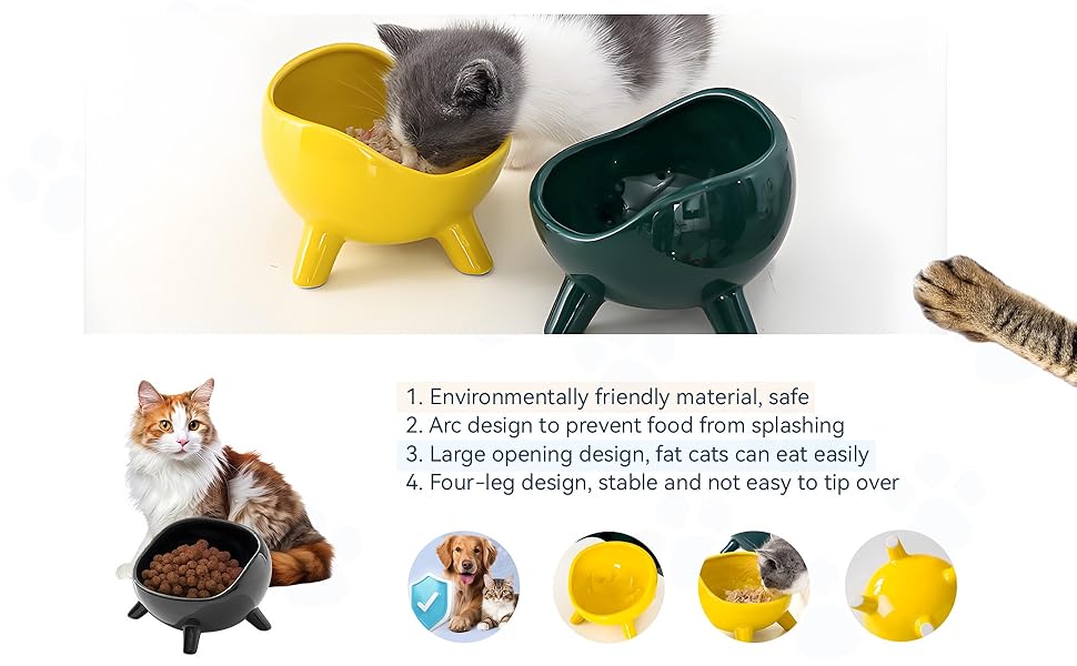 Four-Legged Stability - The four-legged design ensures the cat bowl remains sturdy and secure, avoid it from tipping over easily, especially for eager eaters. The elevated bottom of the cat food bowl provides comfort and protection for your pet's neck and spine, promoting healthy eating habits