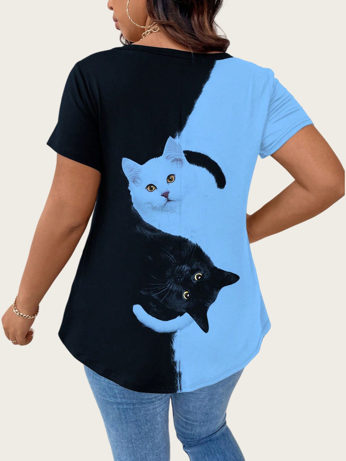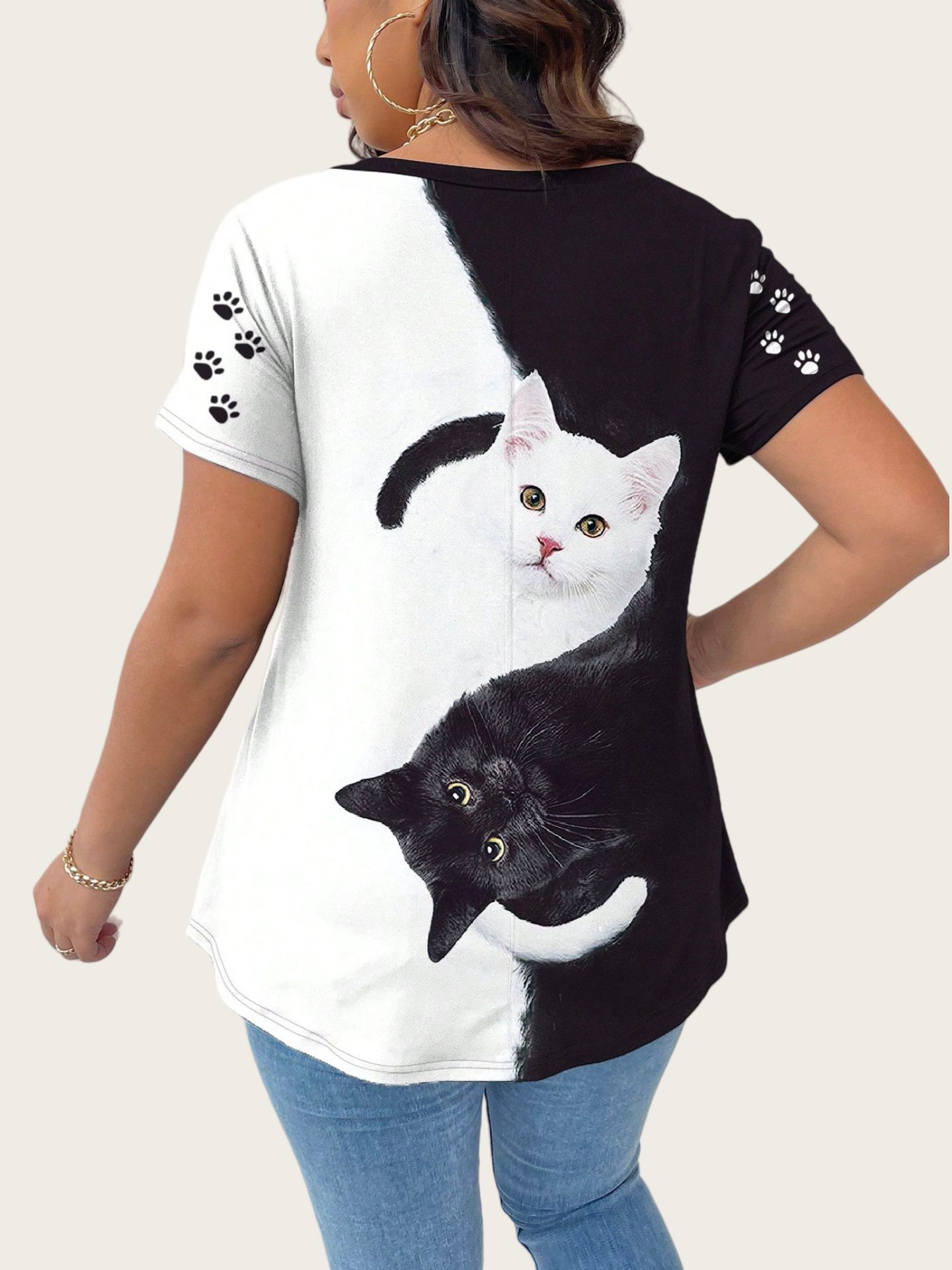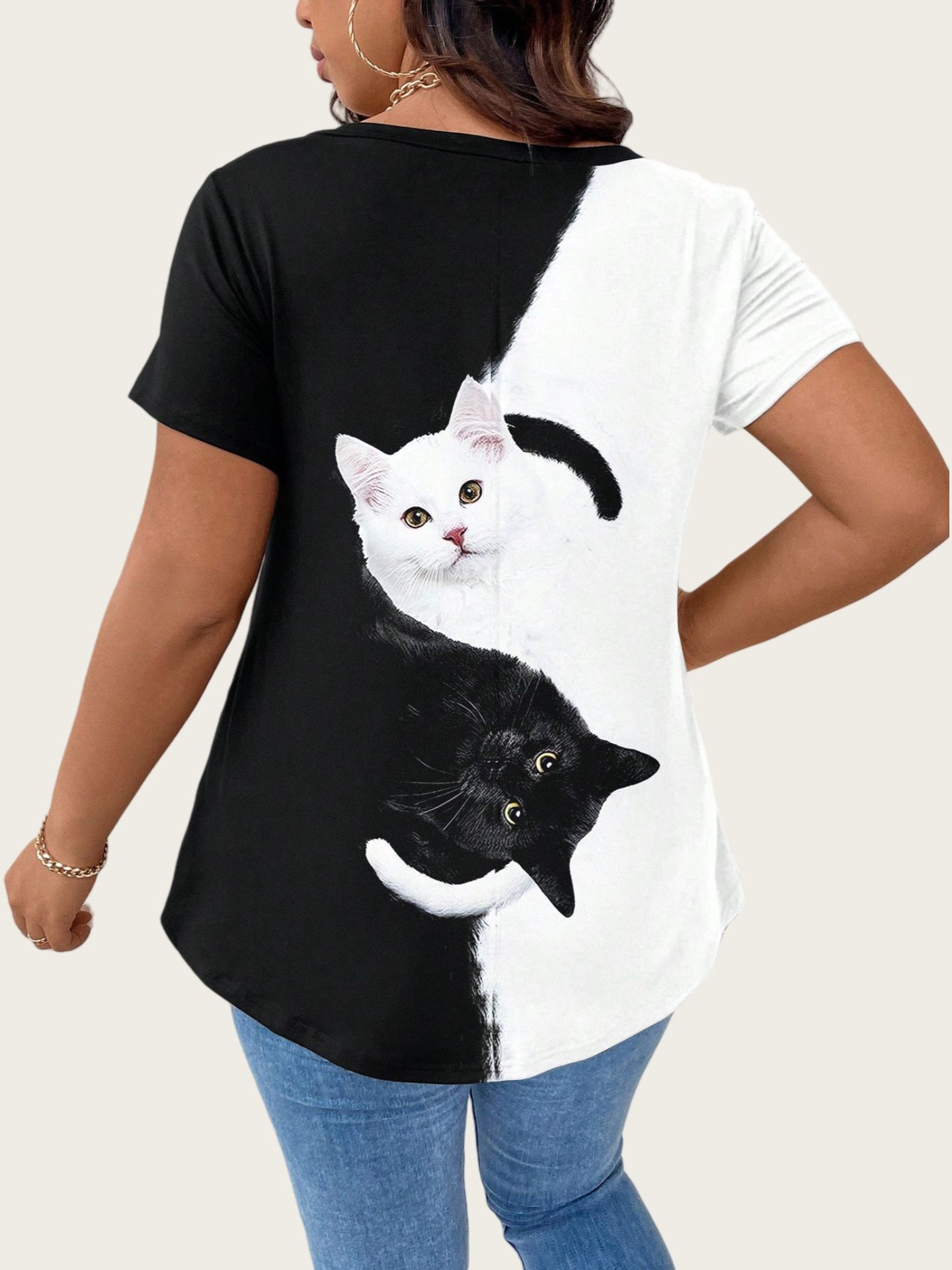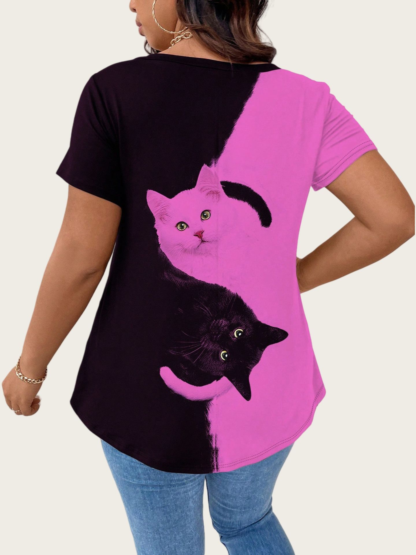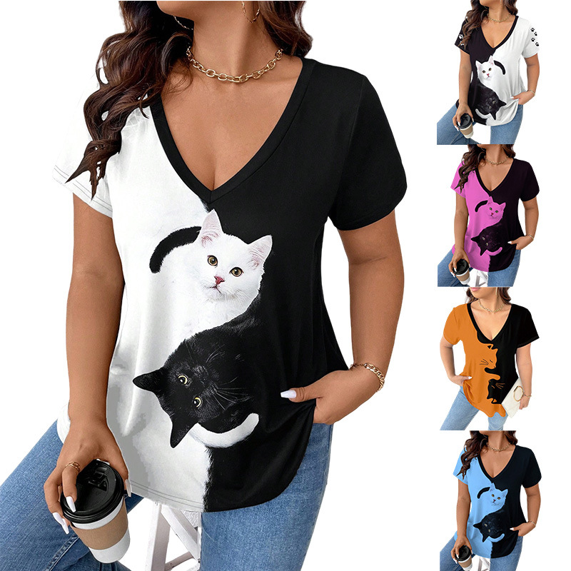 Cat Large-Size Women's Casual Printed T-Shirt