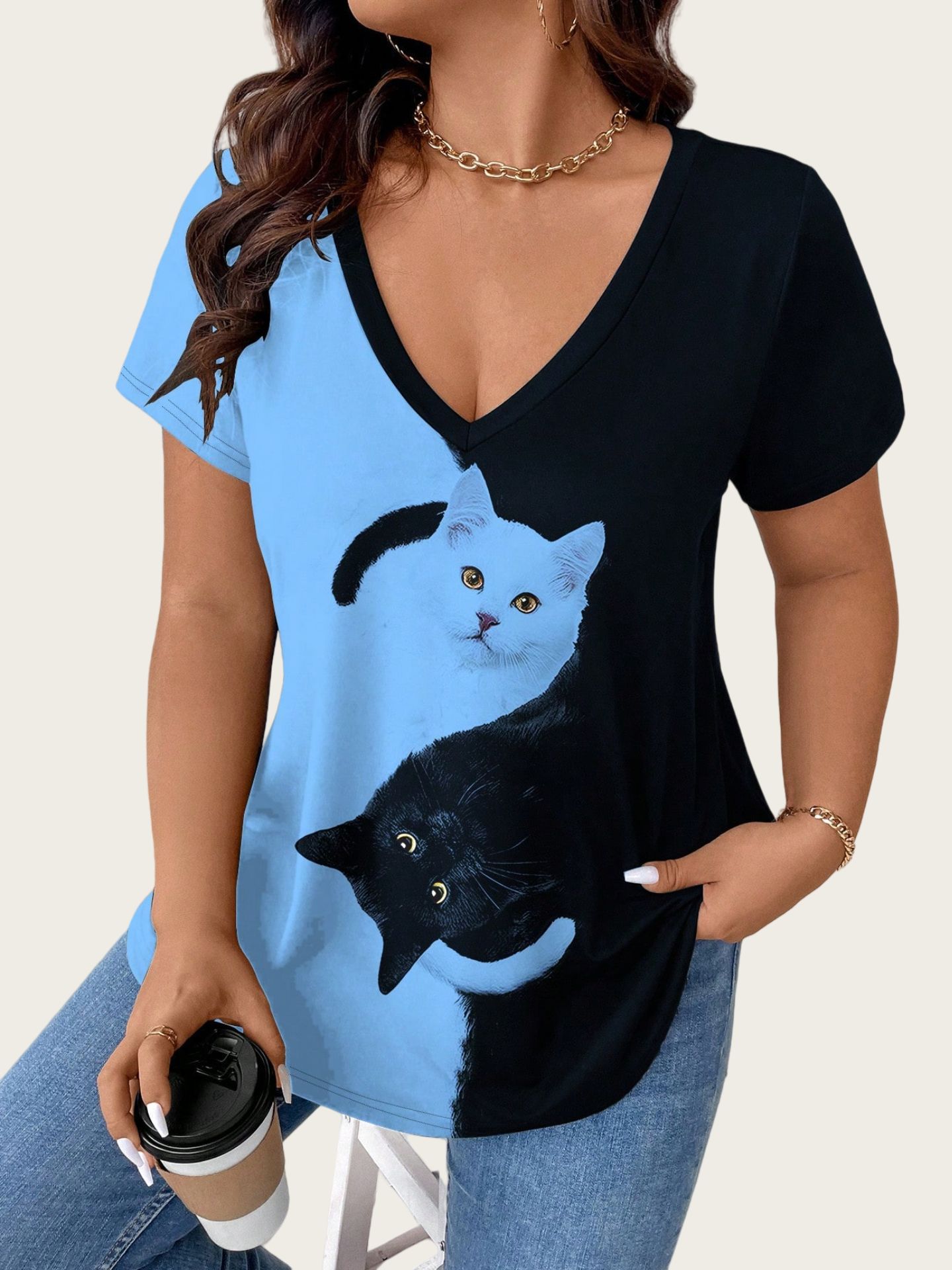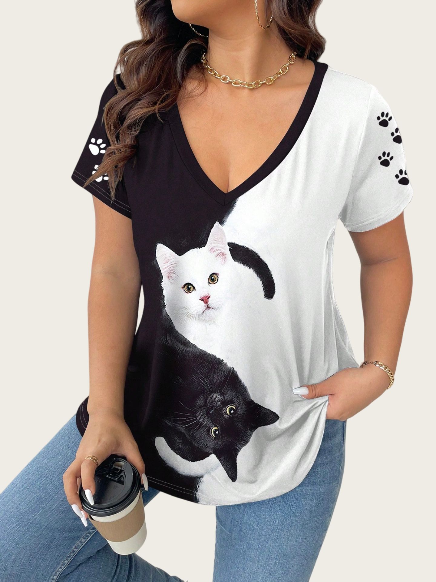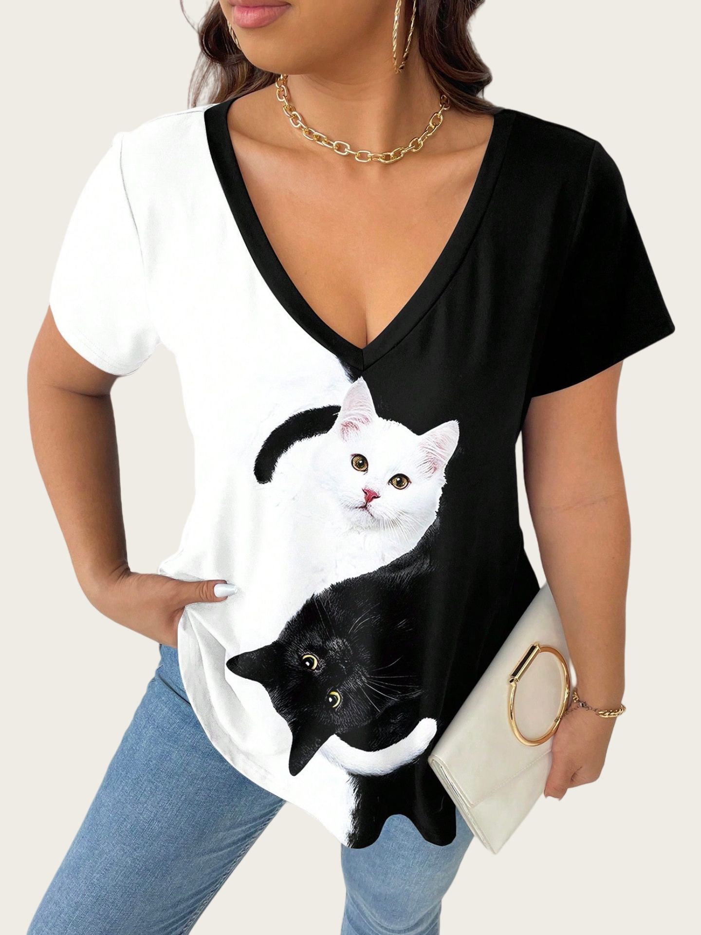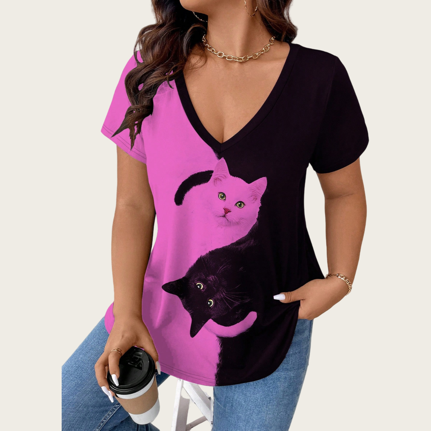 Cat Large-Size Women's Casual Printed T-Shirt