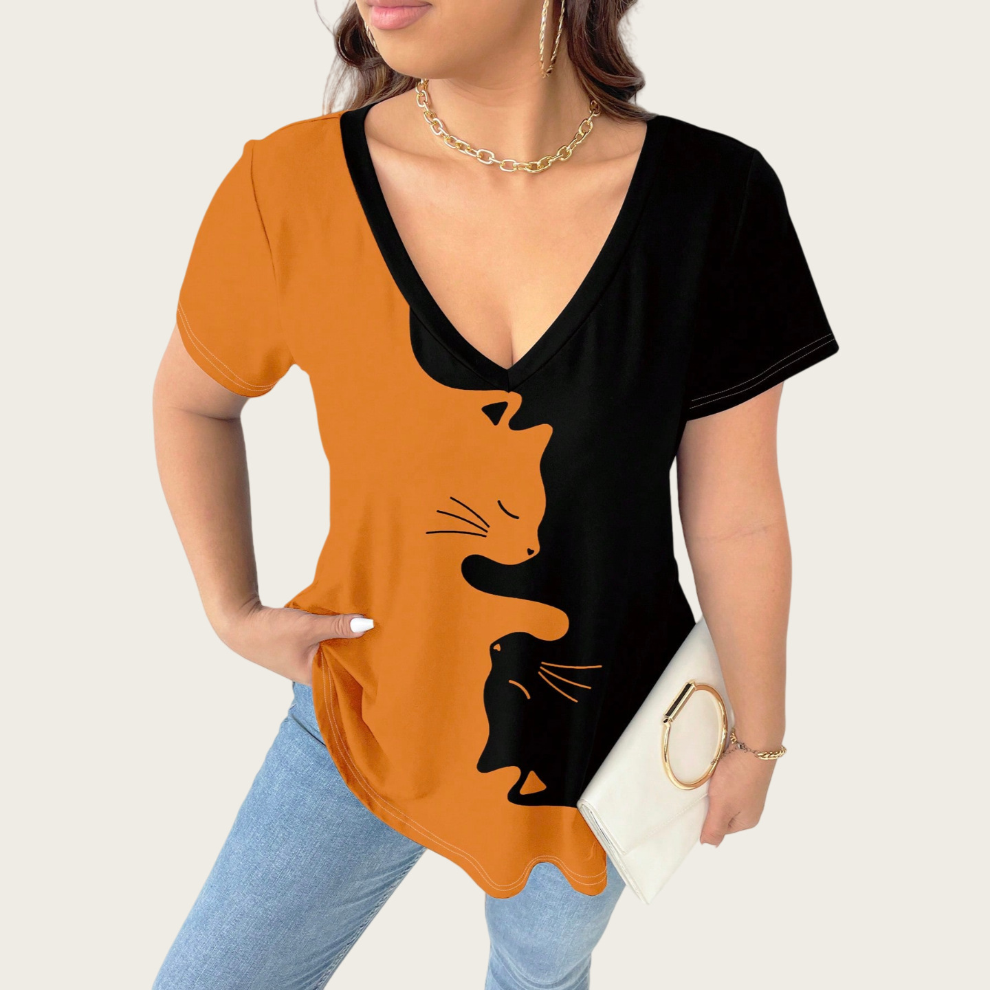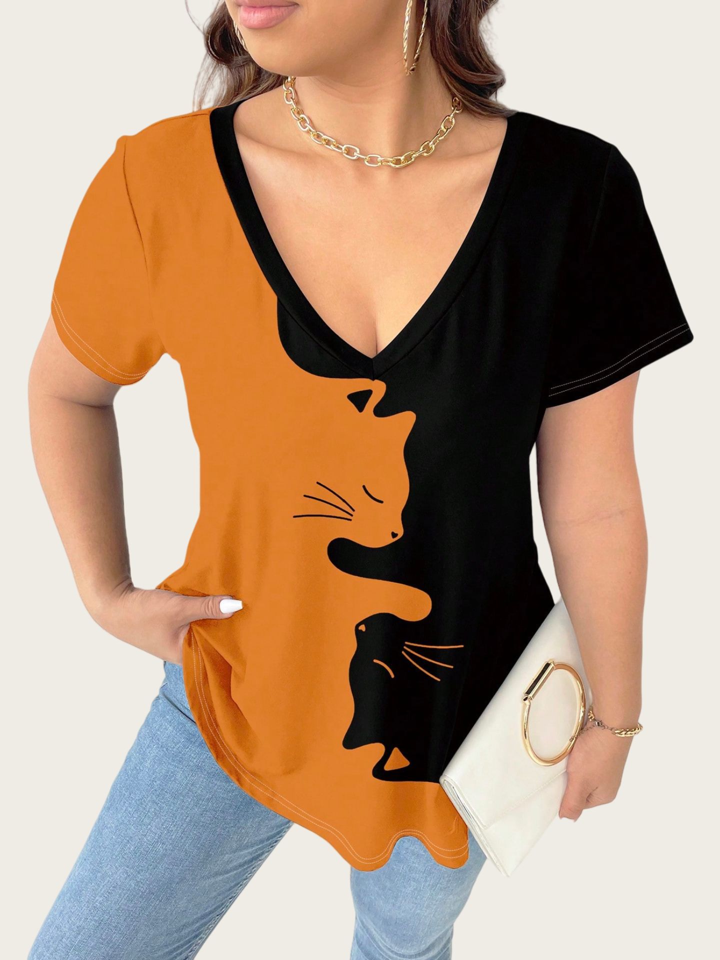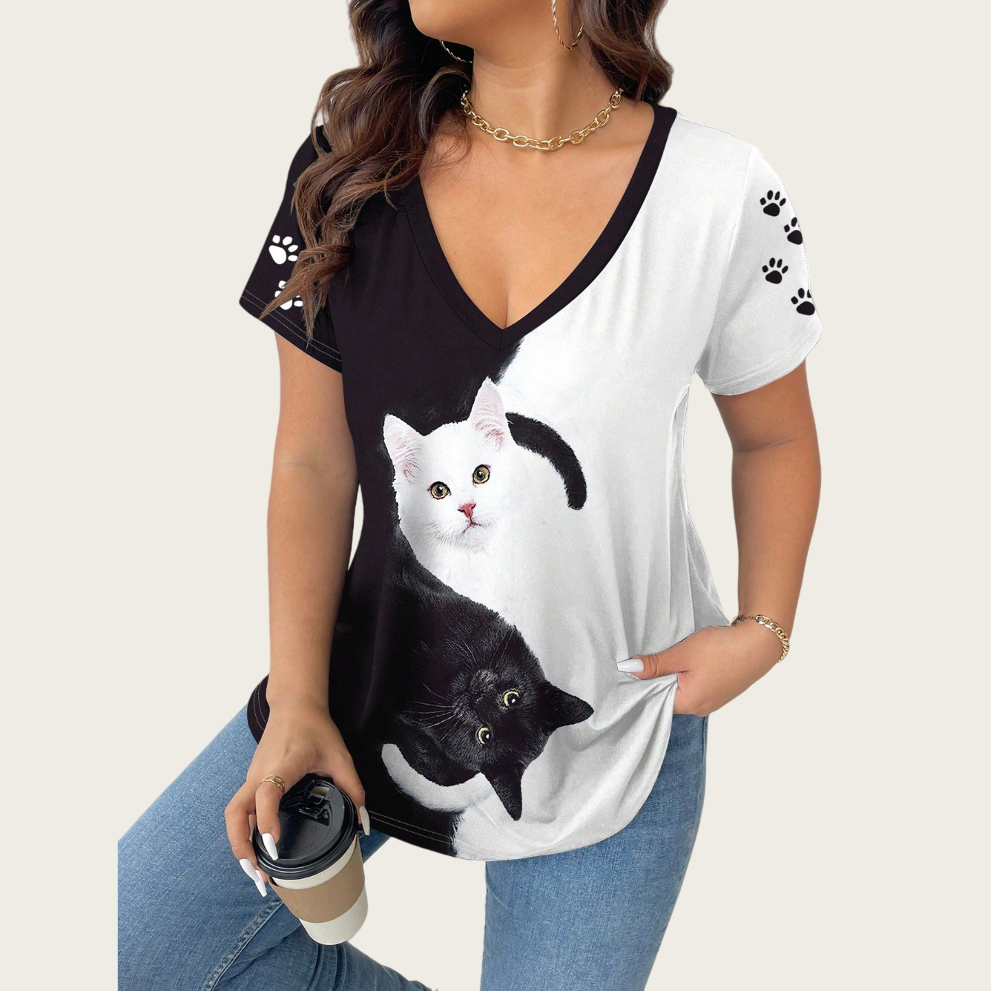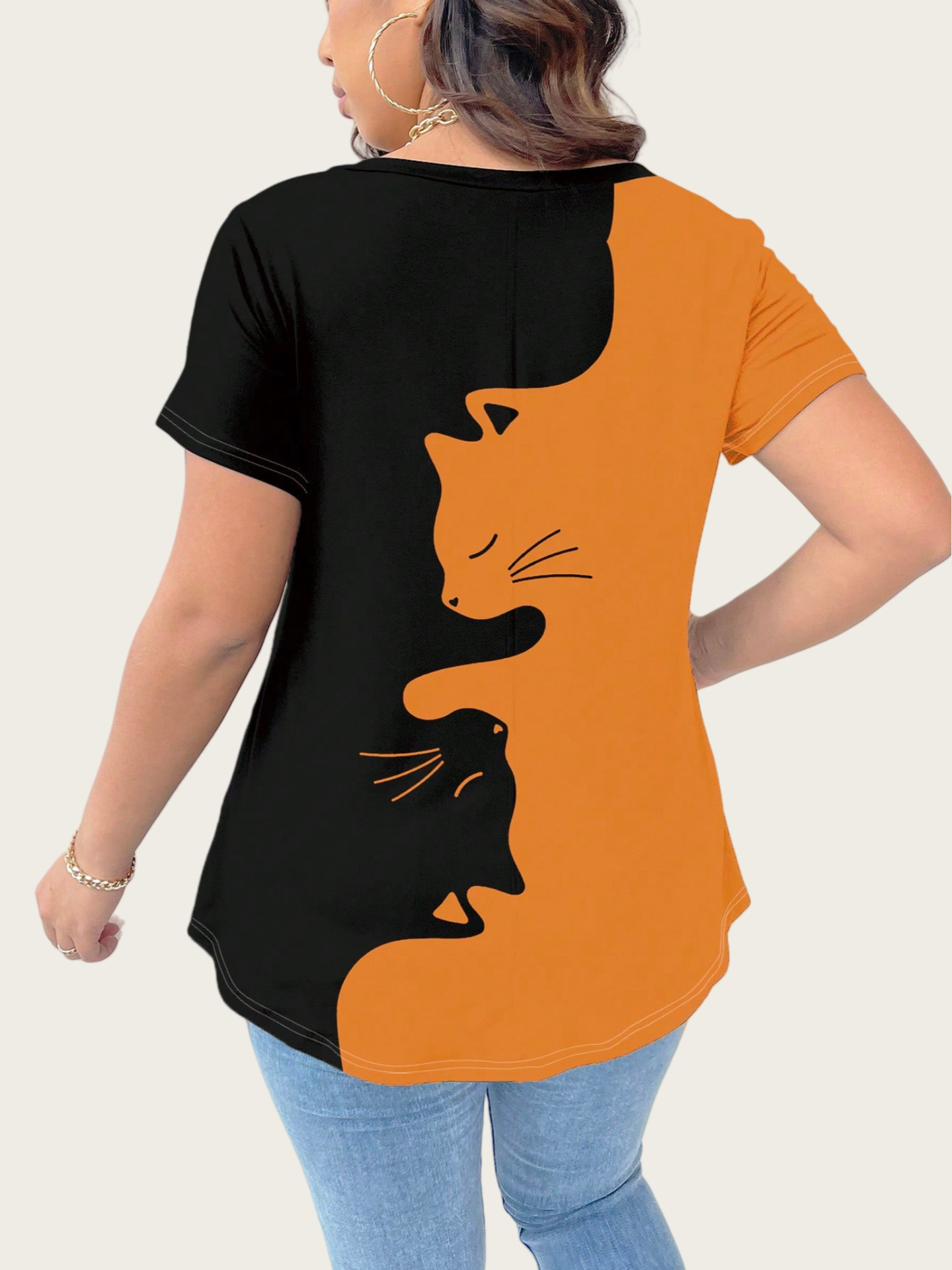 Cat Large-Size Women's Casual Printed T-Shirt