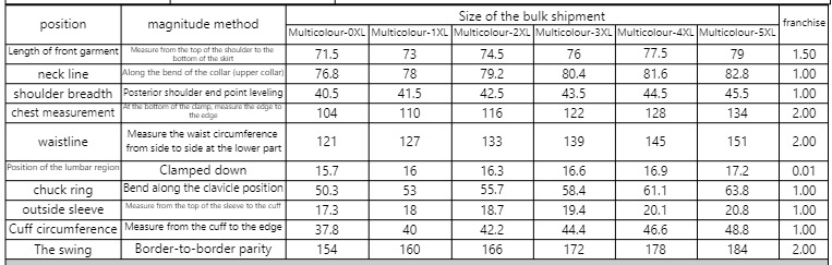 Size: 0XL, 1XL, 2XL, 3XL, 4XL