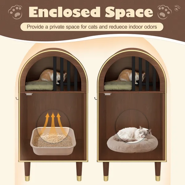 Cat Litter Box Enclosure , 2-in-1 Condo Cat Bed, Cat Shelter Furniture With Two-Level Cozy Haven For 2 Cats, Cute Kitty Condo For Sleeping, Luxury Cat House& Furniture, Espresso