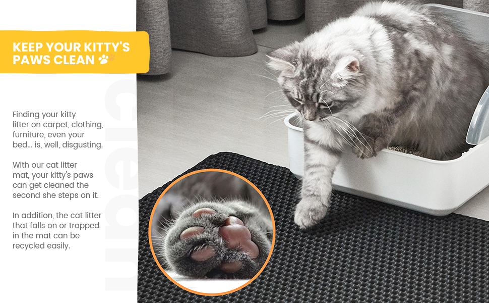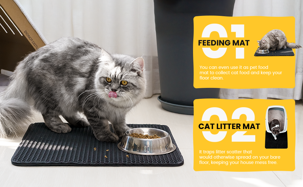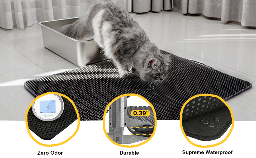 Best Mat for Gathering Litter: This cat litter trapper helps you to trap the scatter cat litter, no more getting litter stuck to your feet and cleaning your floor on daily basis! Our product is large enough to cover your cat’s litter box’s entrance area, and the honeycomb shape holes are extra large to cat and trap every cat litter.
