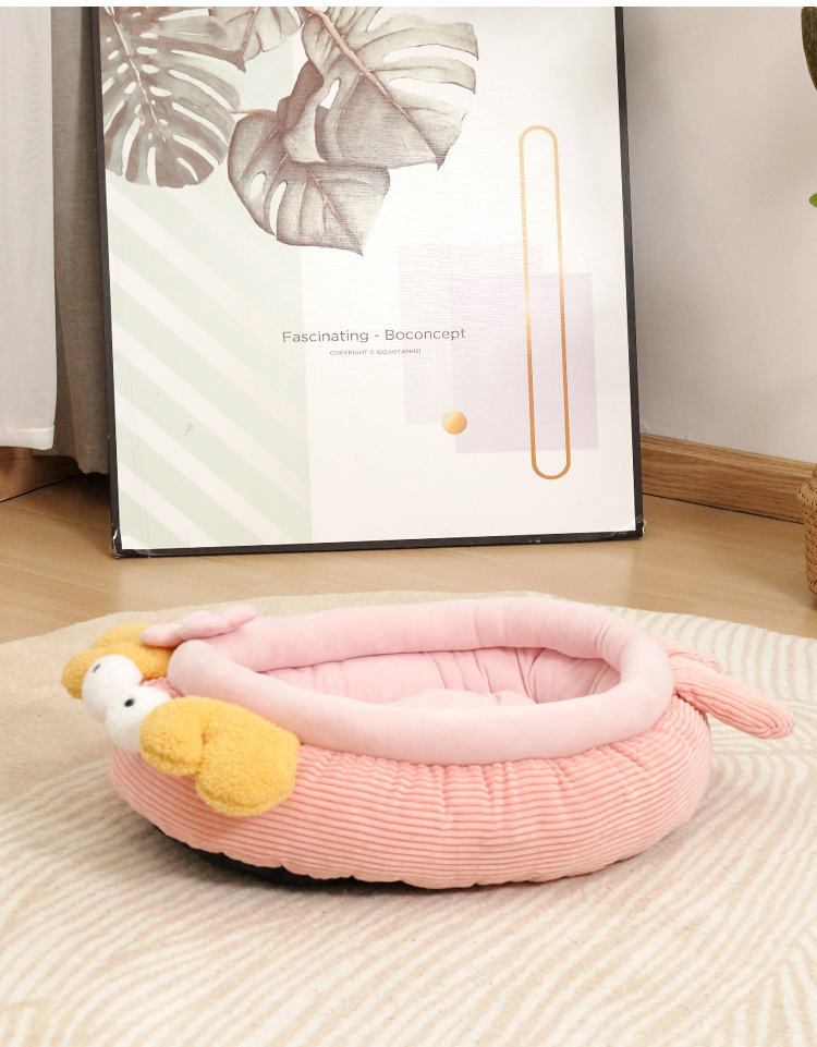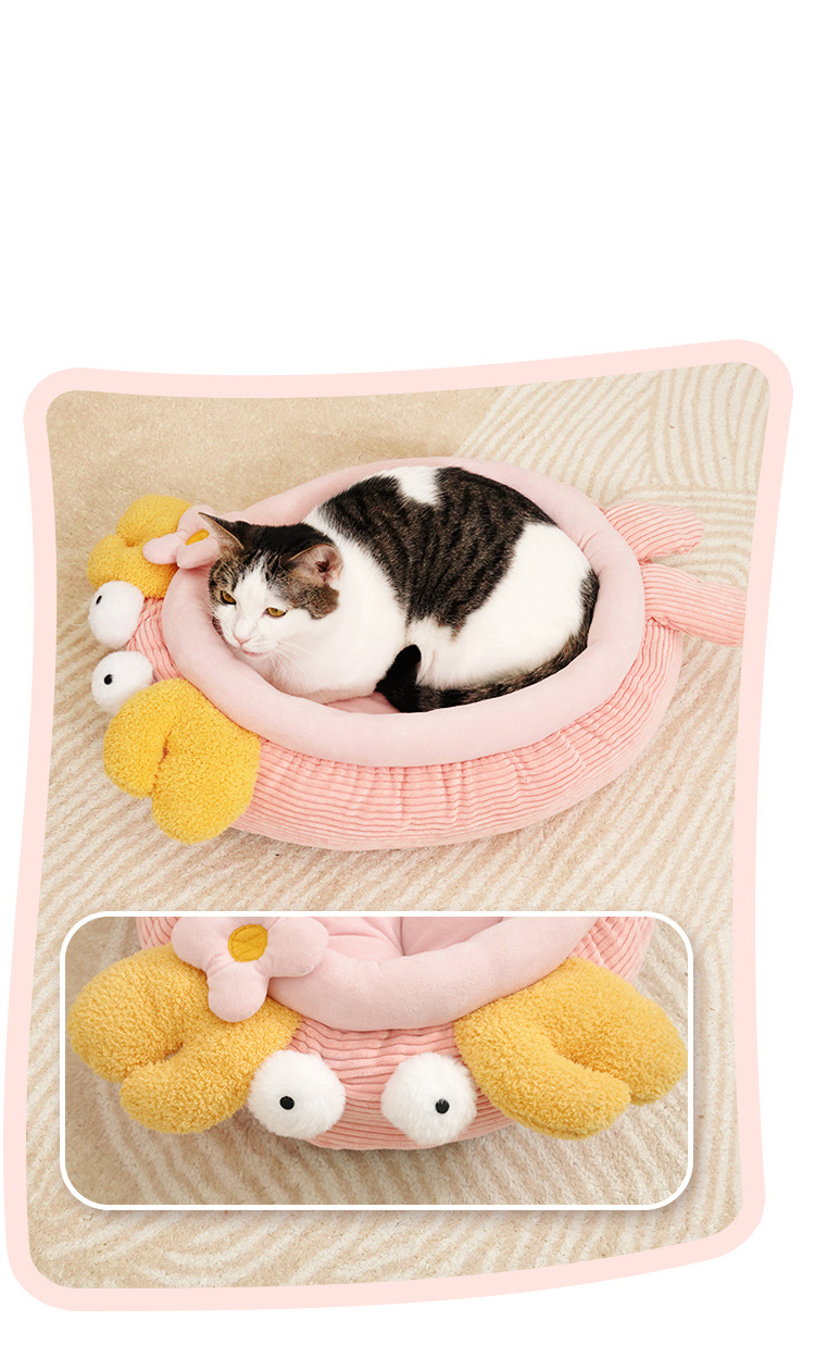 The lobster has a cute look with big eyes and high appearance. The bottom is thickened and anti-skid, and the space inside the nest is spacious and comfortable to the skin.