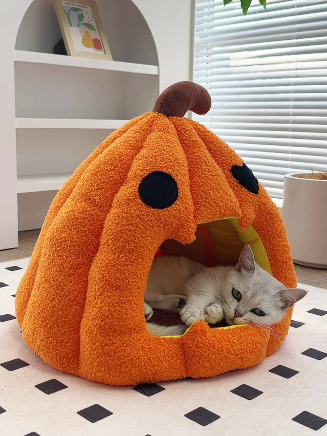 【Decorative】:The Cat Bed Cave is interesting, pumpkin shape can arouse the interest of pets, and it can also be a beautiful scenery in the home.