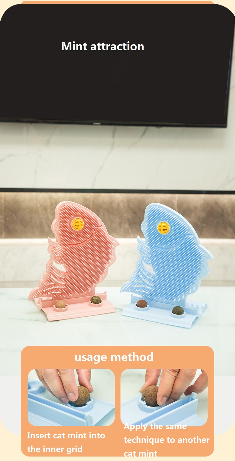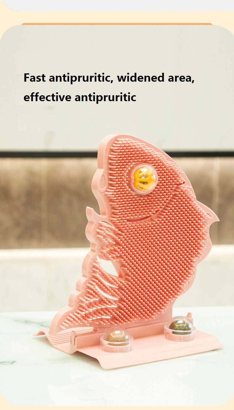 Designed with creative fish shape, the cat wall scratcher can well attract your cat's attention. With help of the self-grooming brush, it can be used to grind your cat's claws, massage their face, head and body so that they will not scratch the furniture.