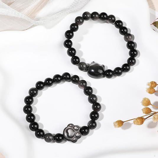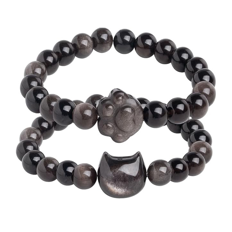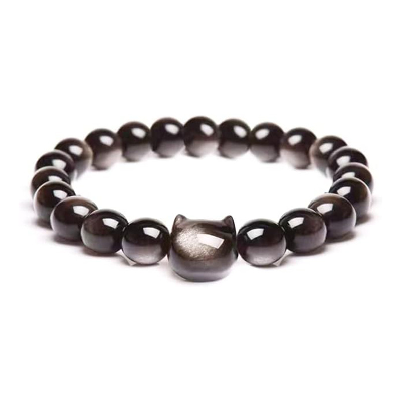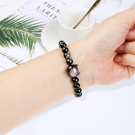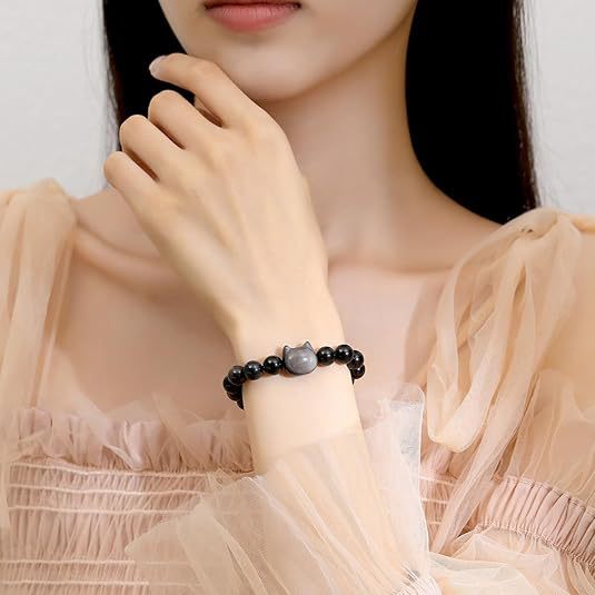 Cat Pendant Silver Stone Tigereye Amethyst Bracelet