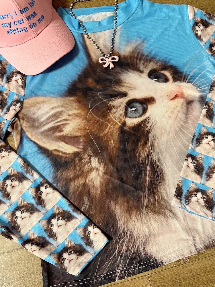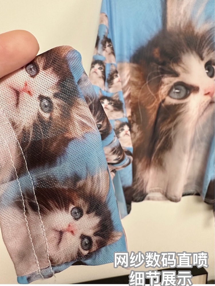 Cat Printing Breathable Sun Protection Stretch Mesh Bottoming Shirt Top