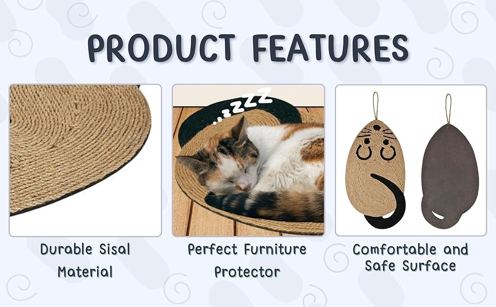 DURABLE SISAL MATERIAL: Quality sisal and EVA material provide a durable surface for the scratching pads for indoor cats, allowing your cat to grind its claws and relax.