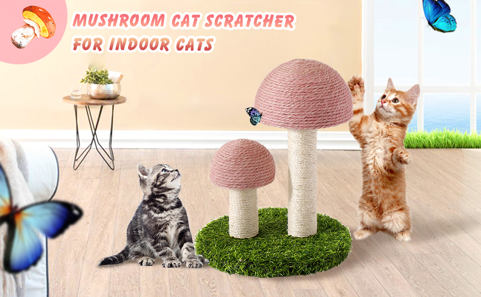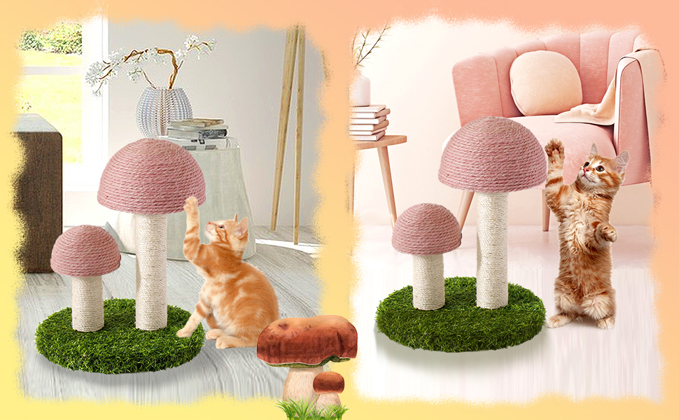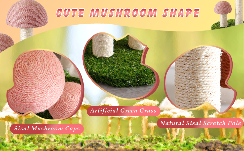 【Cute Mushroom Design】The eye-catching mushroom shape attracts cats for scratching, playing, and climbing while also serving as a charming piece of home decor.