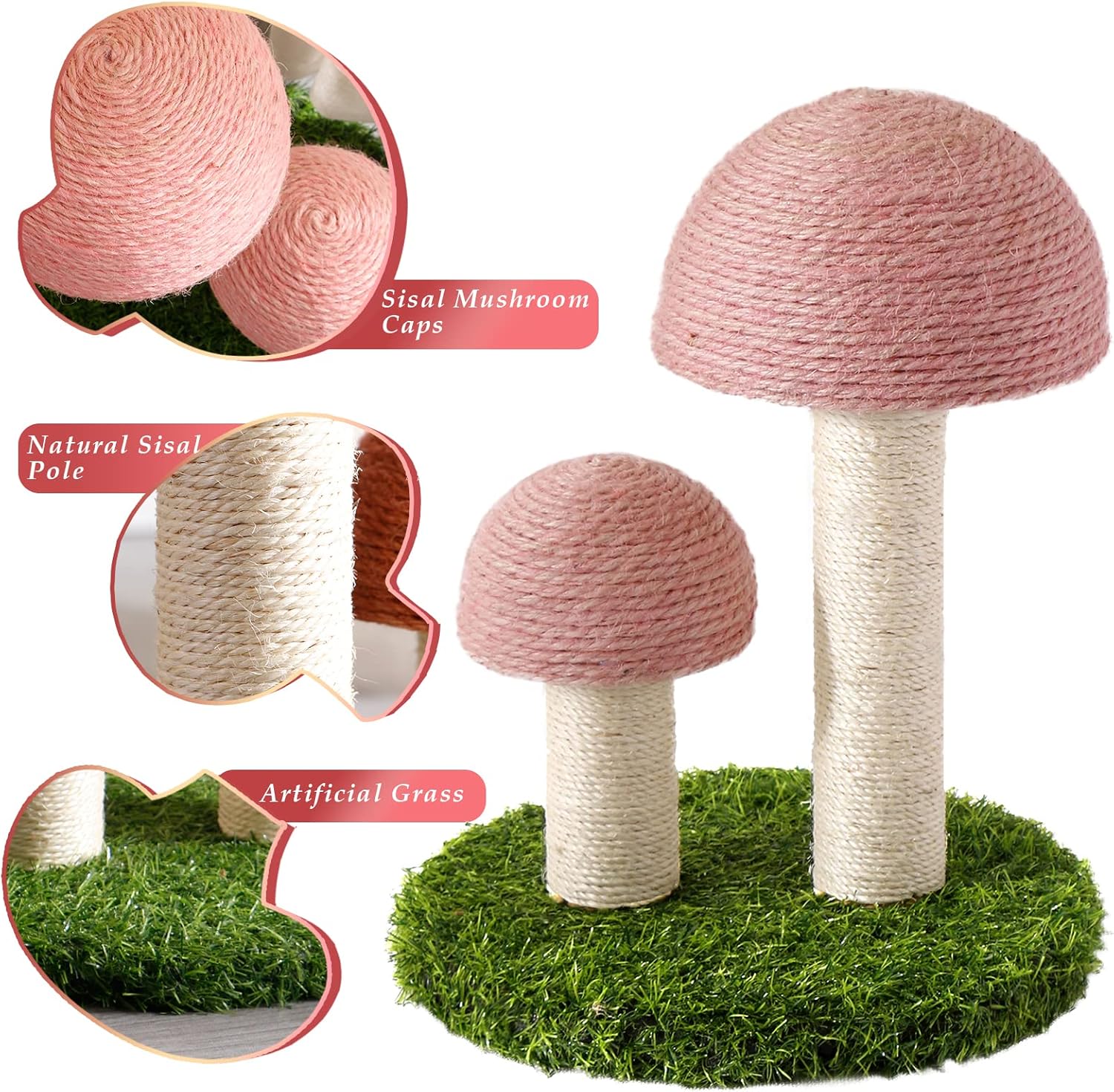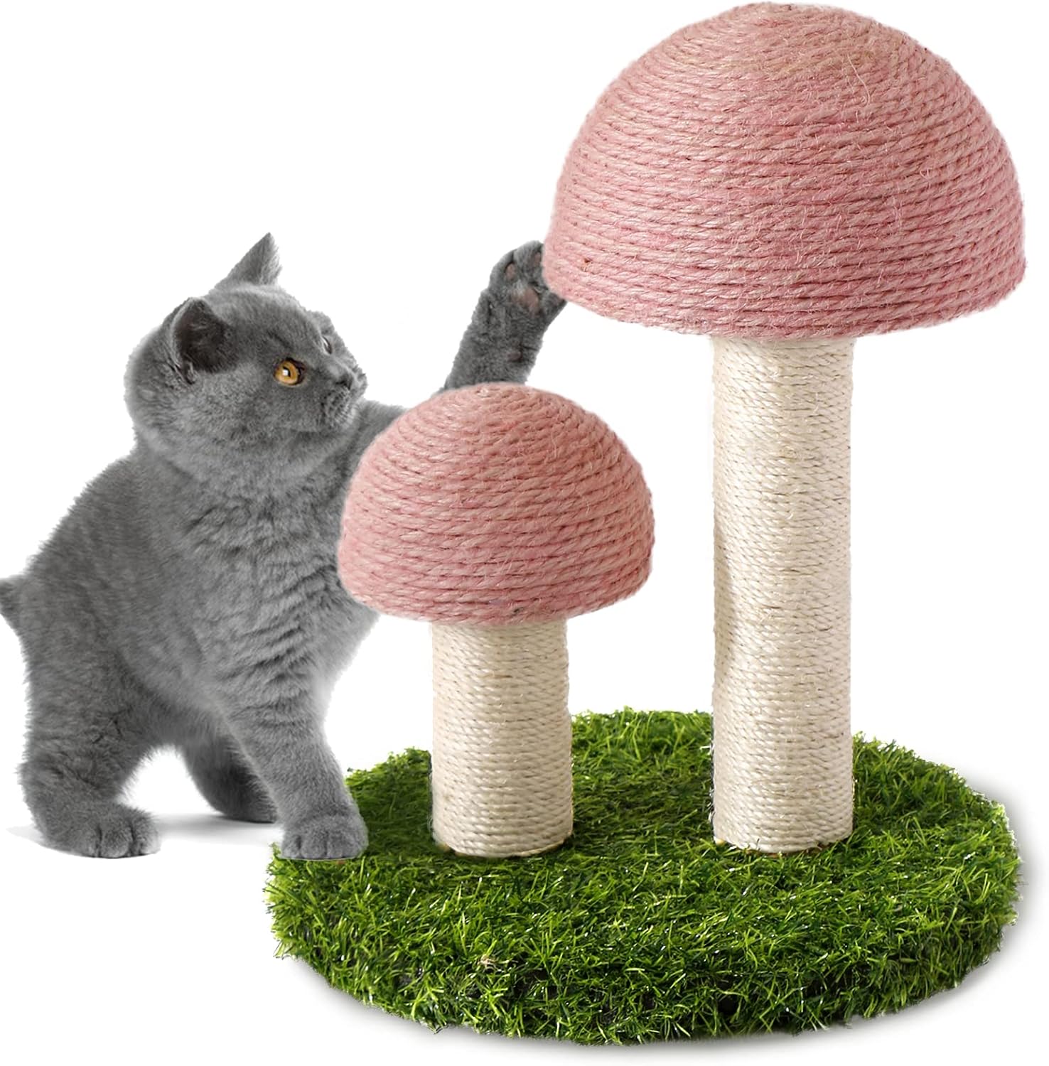 【100% Natural Sisal】Mushroom caps and poles of the cat scratching post made from eco-friendly and high-quality sisal material, promoting healthy scratching habits for your kitten while protecting your furniture.