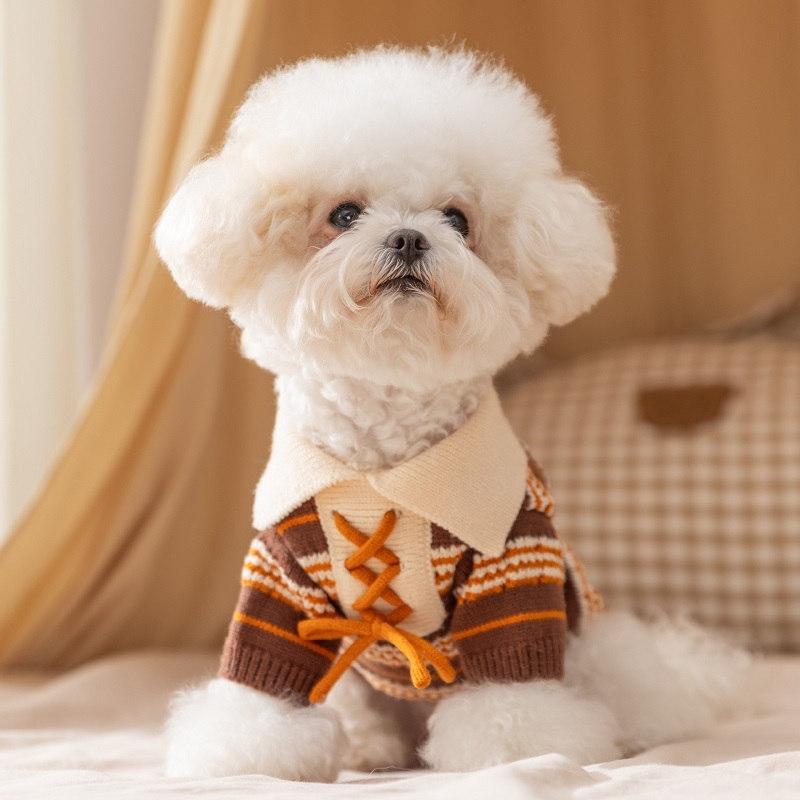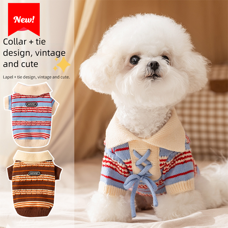 Classic striped design: This sweater is characterized by its classic striped style. The folded collar and the tie strap on the chest are very eye-catching, making your pet look more attractive