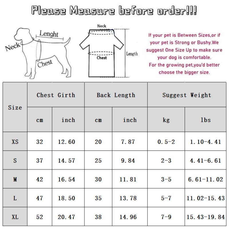 Size: Please measure the pet's chest circumference and back length first, and then purchase according to the size chart recommended. It is suitable for cats, puppies and small dogs