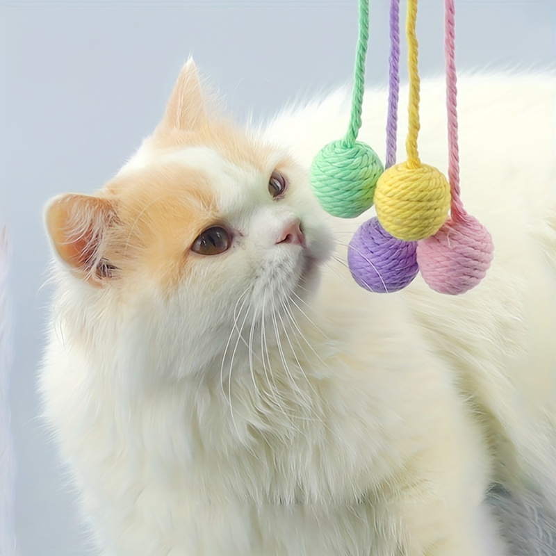 Cat Toy Ball With Rope Built In Bell To Roll The Ball And Make A Sound For Kittens To Play With