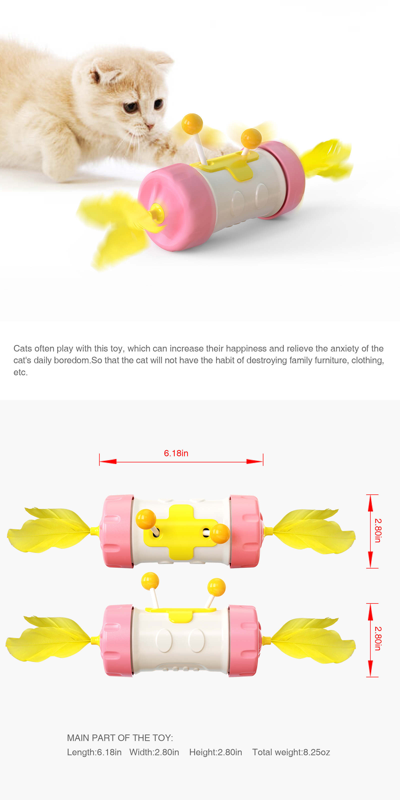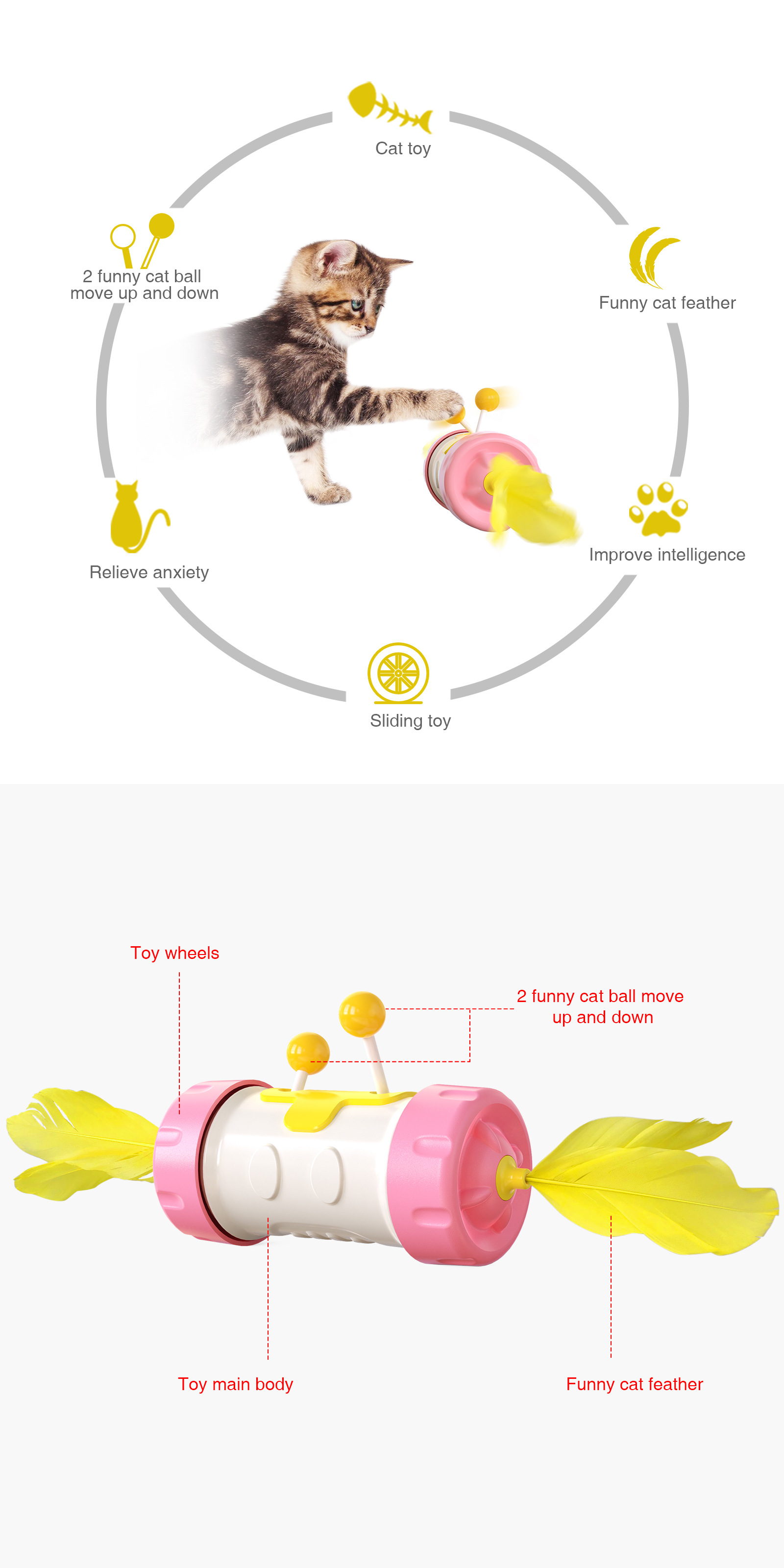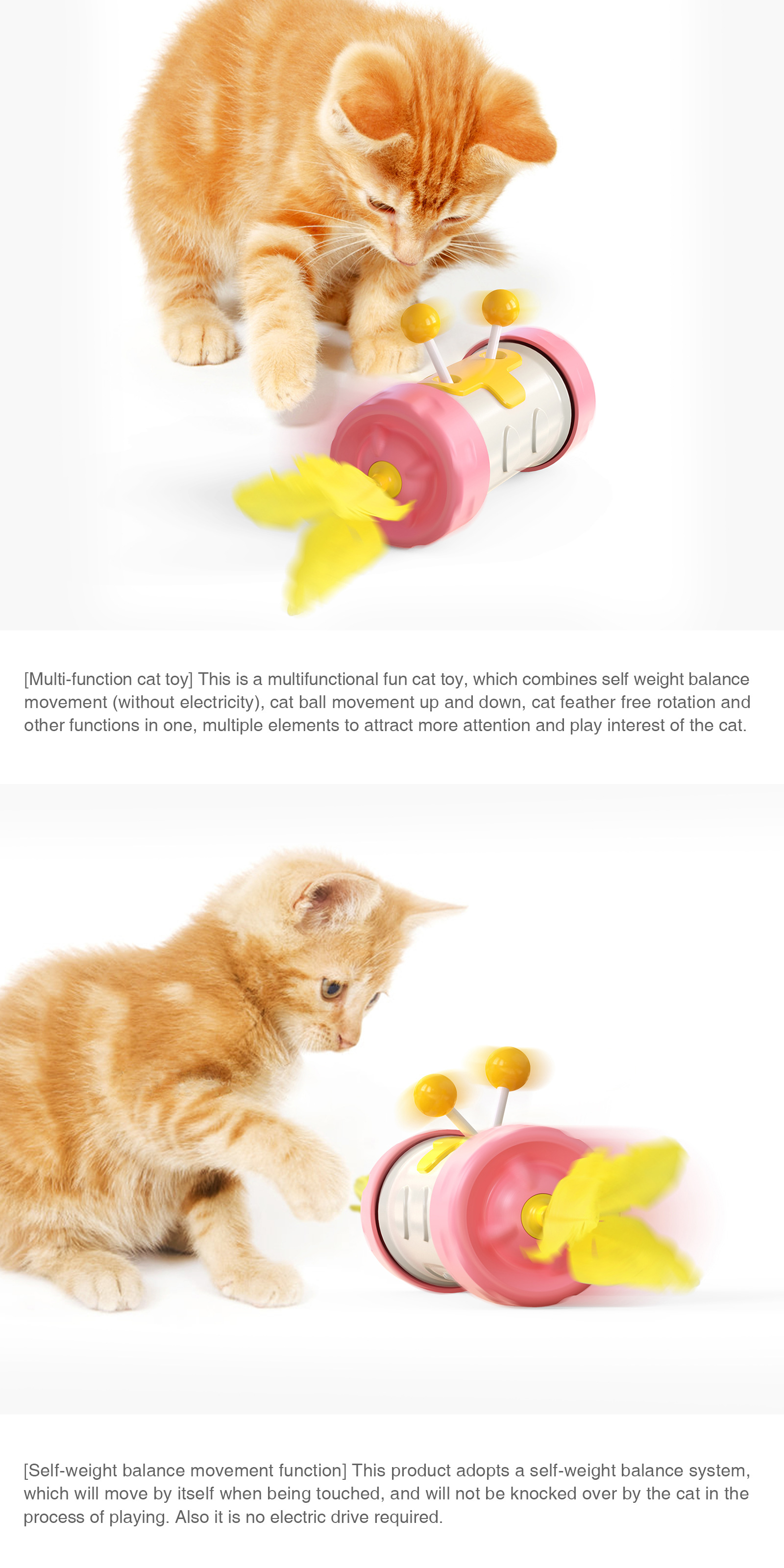 Cat Toy Funny Cat Stick Pole Tumbler Feather Fighting Ball Kitten Interactive Balance Chasing Puzzle Training Toy Pet Products