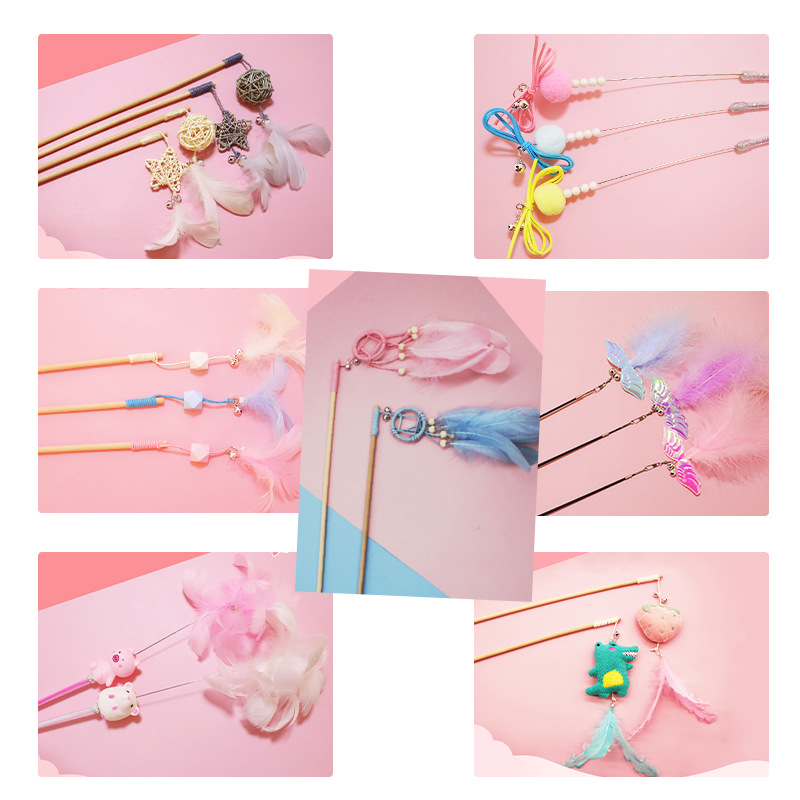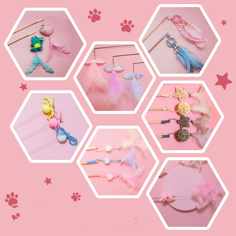 Color: Sunflower cat trailer, fur ball Bell bow-pink, fur ball Bell bow-blue, fur ball Bell bow-yellow, bamboo cat trailer, feather hose-light purple, feather hose-pink, feather hose-water green, long tail mouse-purple, long tail mouse-pink, long tail mouse-blue, corn shape-Green, corn shape-blue, cactus shape-Green, cactus shape-blue, hairball Tassel Style, small float style, feather model, five-star wooden stick-white, five-star wooden stick-gray, rattan Balar wooden stick-White, vine Bal wooden stick-gray, feather pendant-pink, feather Pendant-blue, feather pendant-purple, five-pointed star-purple, five-pointed star-pink, five-pointed star-white, five-pointed star-blue, big TikTok cat stick, telescopic Angel-pink, telescopic Angel-blue, telescopic Angel-purple, pig feather-pink, strawberry feather-pink, dinosaur feather-Green
