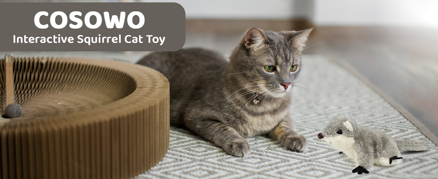 Squirrel with Sound: The furry squirrel toy makes realistic sounds when play begins. Attracts cats to chase and play with the toy for fun.