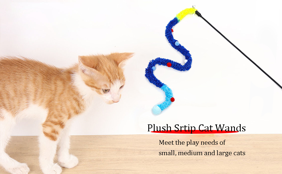 Package include cat wand toys. Pole measures 41cm in length, the plush strip is 60cm in length