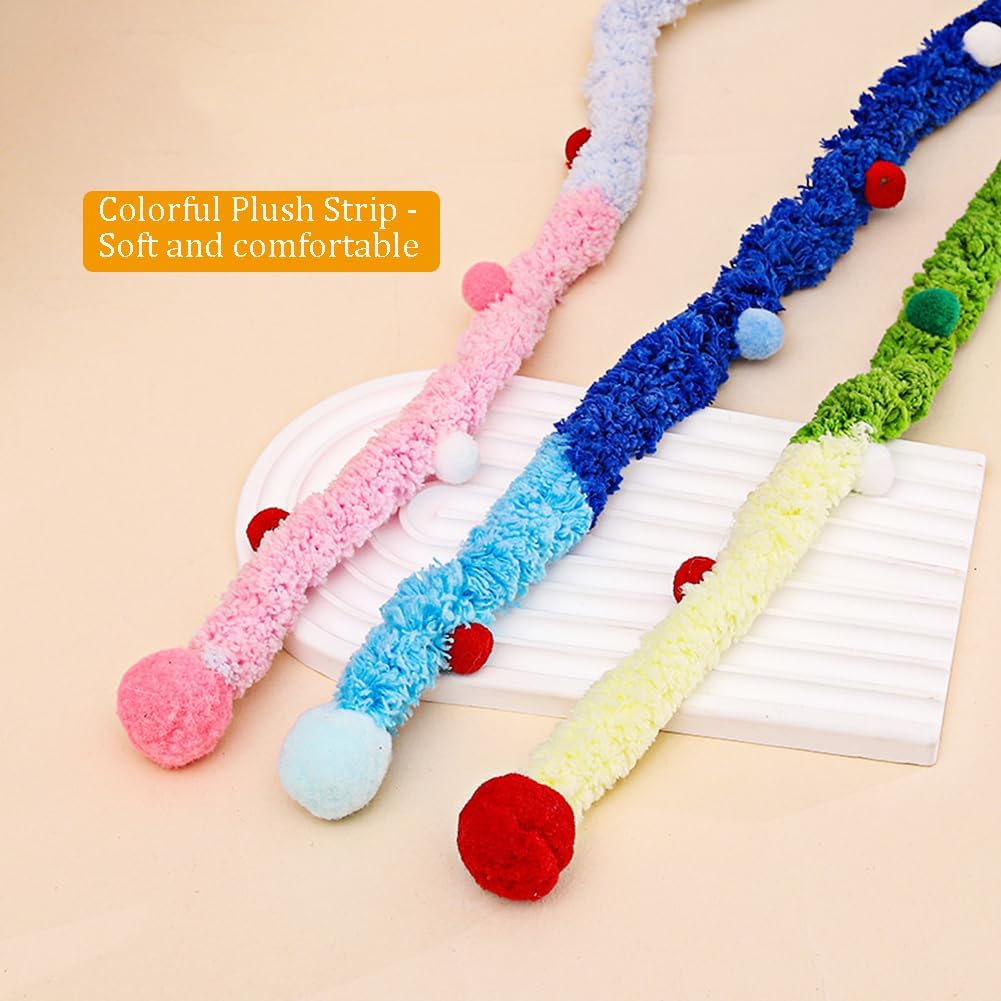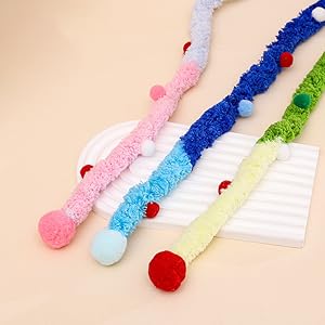 Made of plush strip, soft, non-shedding. It is safe and enjoyable for your cats. When not in use, wrap the strip on the pole and put the toys in a safe place