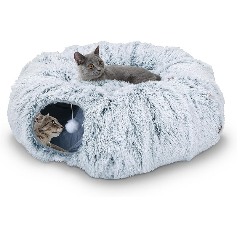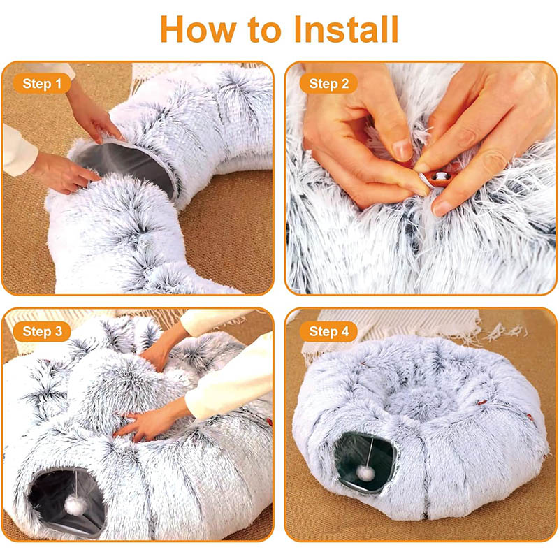 【Versatile】: Transformable design features a soft central bed and detachable tunnel, easily connecting into a large square, extended tunnel, or separate hideouts—great for cats and dogs to play, explore, and rest indoors