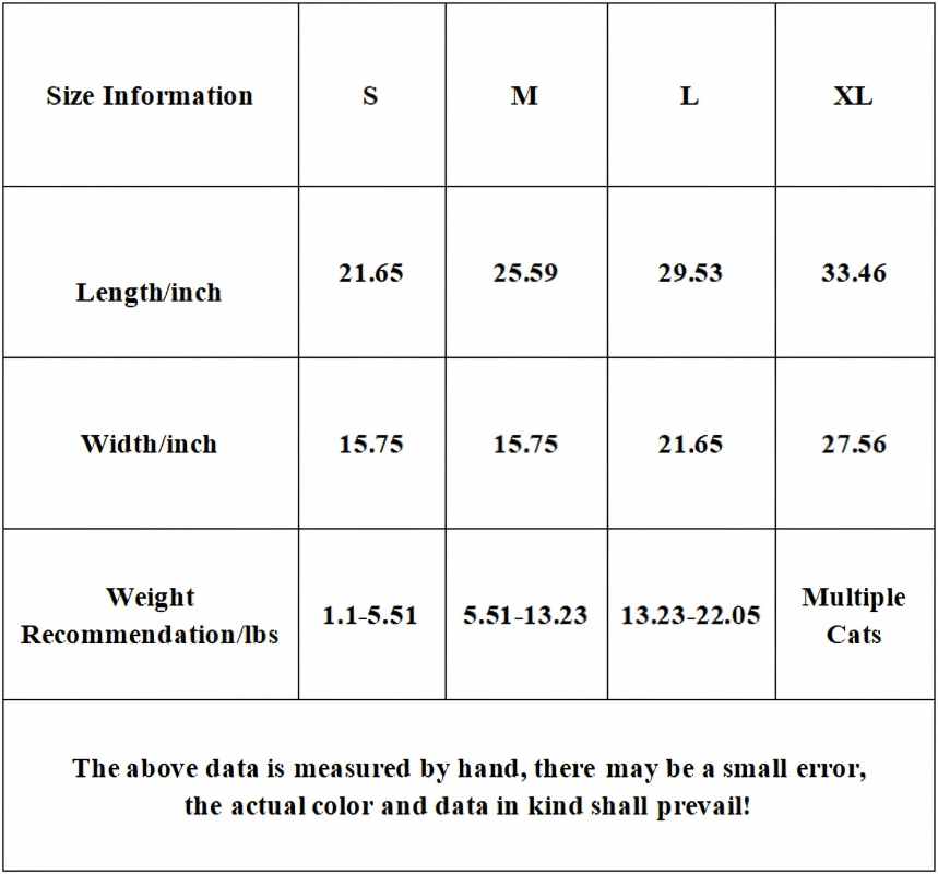 Sizes:The kitty tunnel bed comes in four sizes,and two color designs, so you can match them with your home decor. If you have any questions, please feel free to contact us.