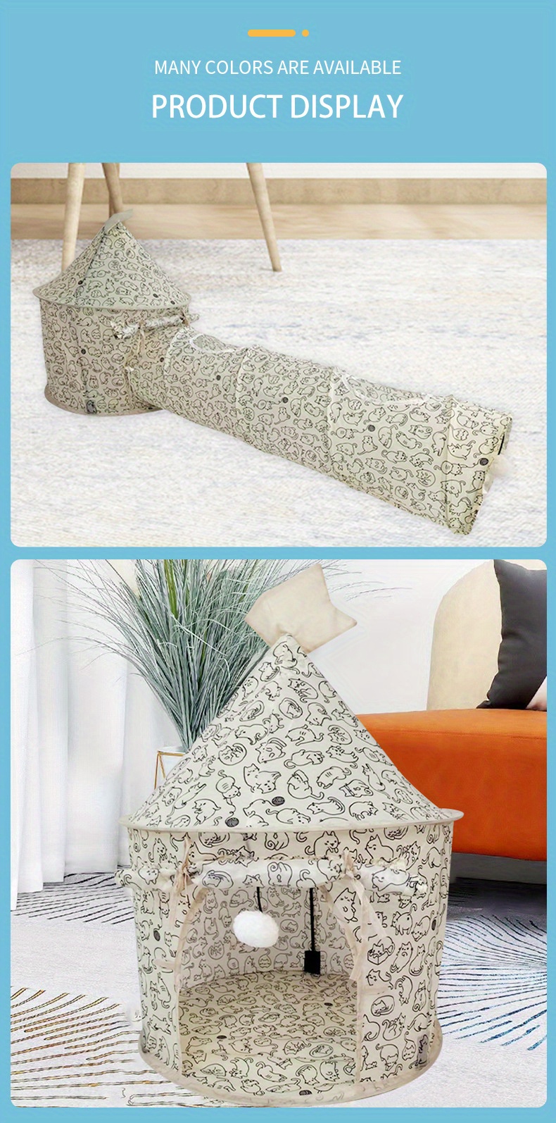 Cat Tunnel Splicing Tent Cat Nest Four Seasons Universal Portable Quick Folding Cat Pet Play House Tent With Up Tunnel For Cats