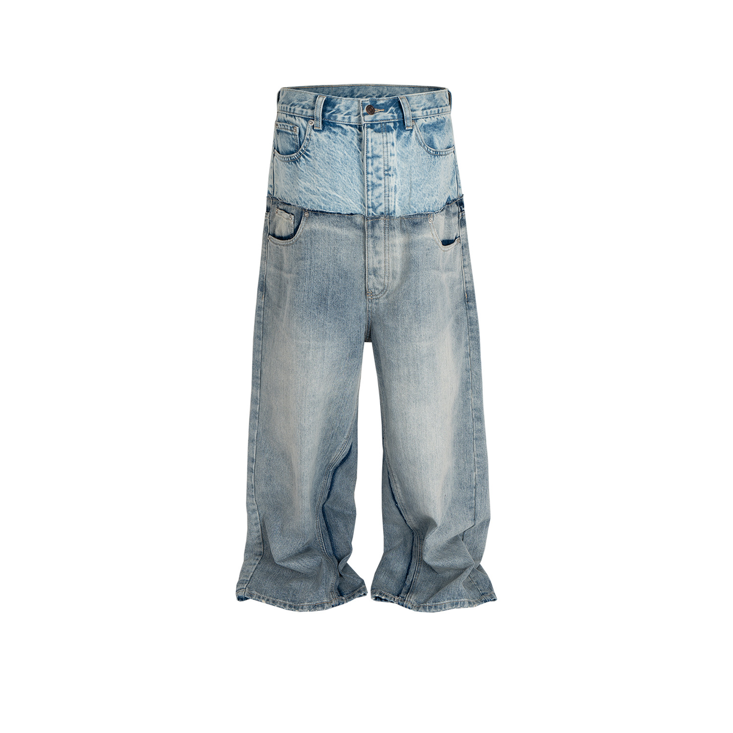 Cat Whisker Distressed Long Pants Unisex Double Waist Patchwork Jeans