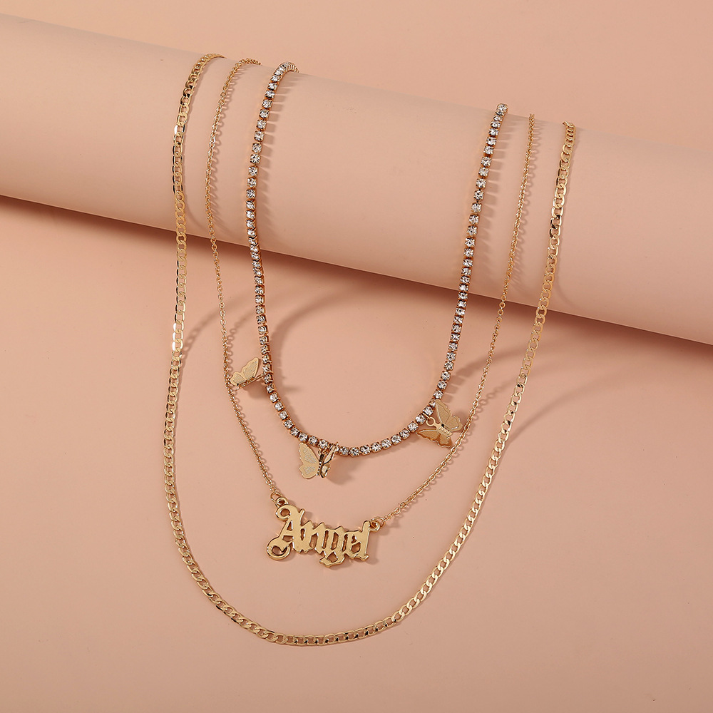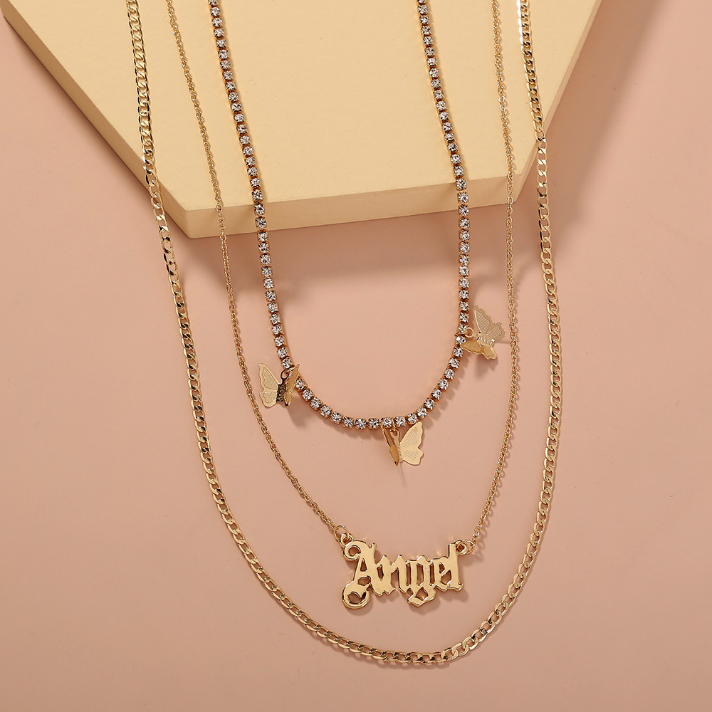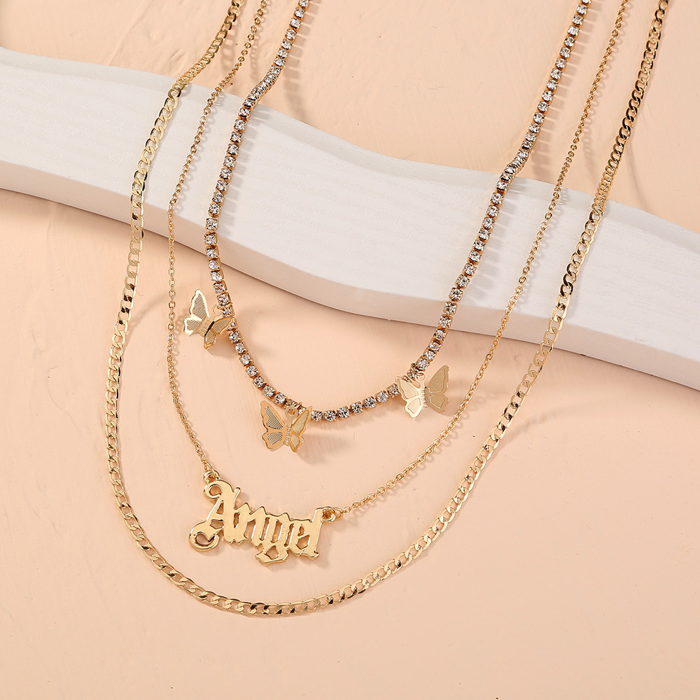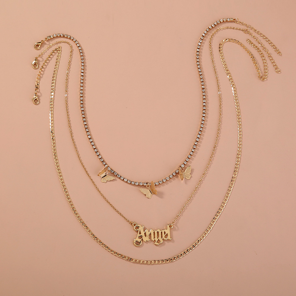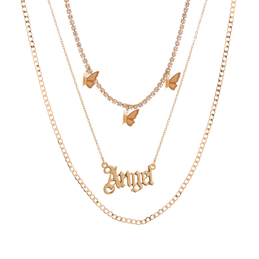 Catch Chain Tassel Butterfly Letter Angel Multi-layer Temperament Necklace Accessories