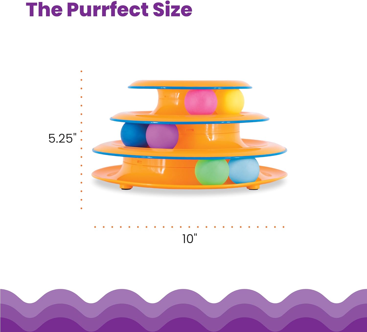 Three-level cat ball track with six brightly colored spinning balls to bat, swat, and chase around the tracks