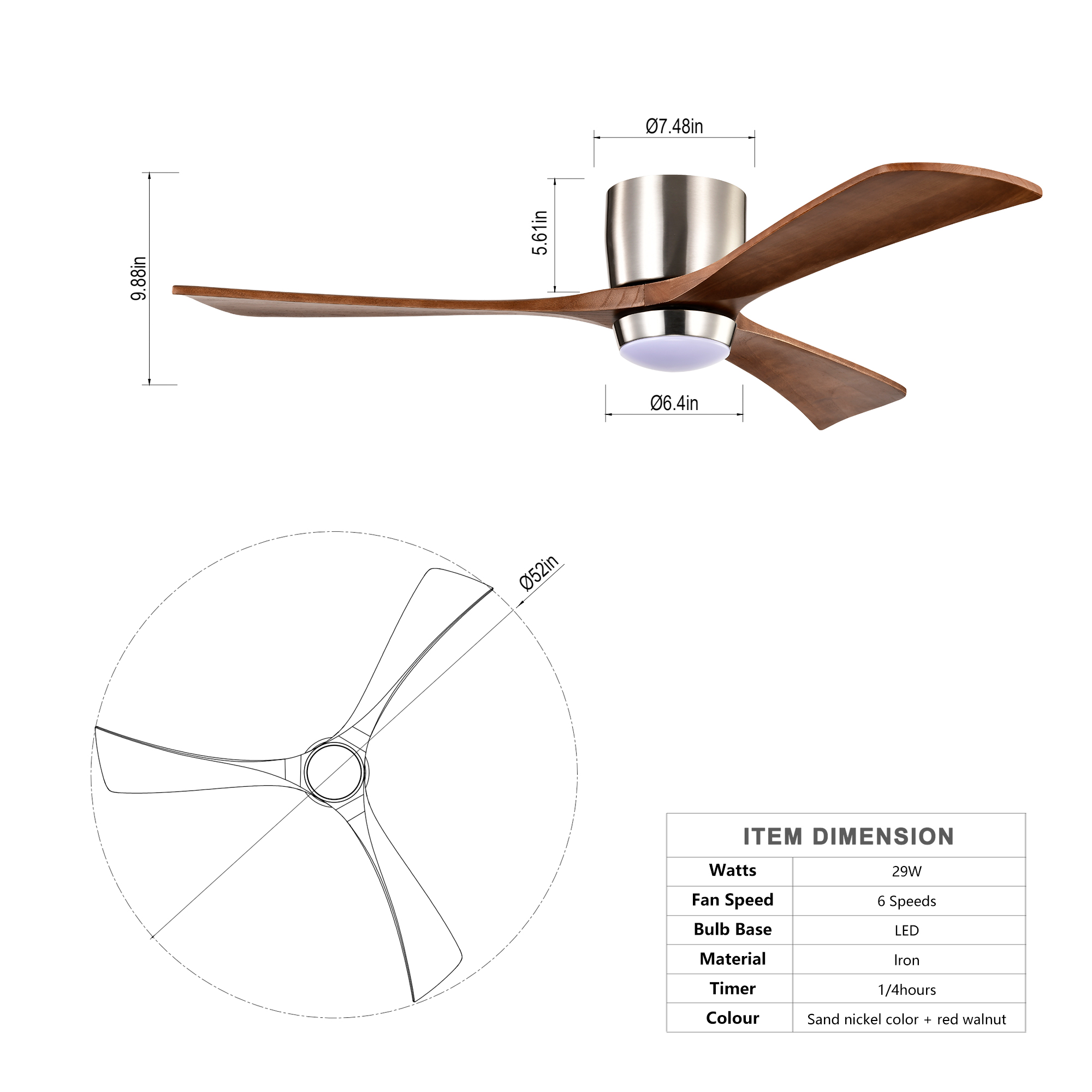 Product Name:52" Ceiling Fan with Lights Remote Control,Quiet DC Motor 3 Wood Blade Ceiling Fans 6 Speed Levels,Reversible Ceiling Fan, for Patio Living Room, Bedroom, Office,Indoor.(Stain nickel + Walnut )