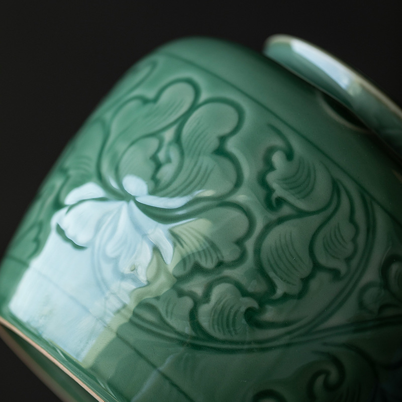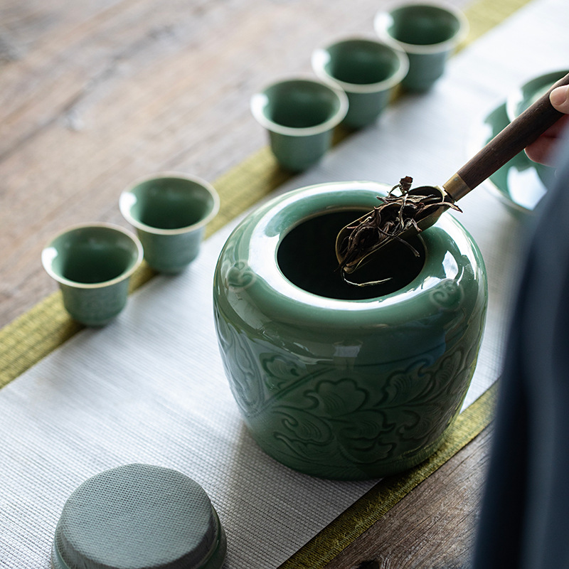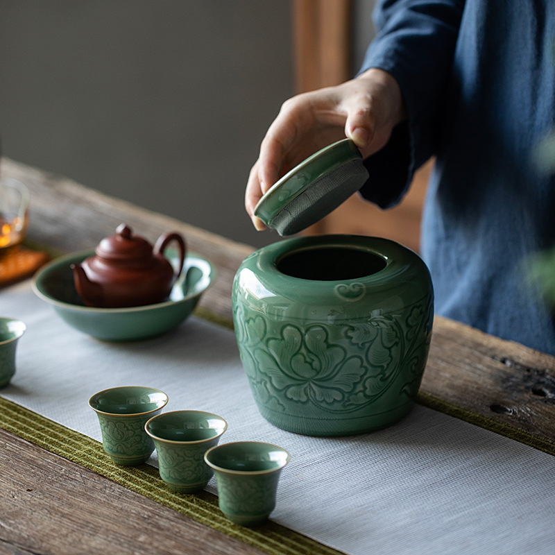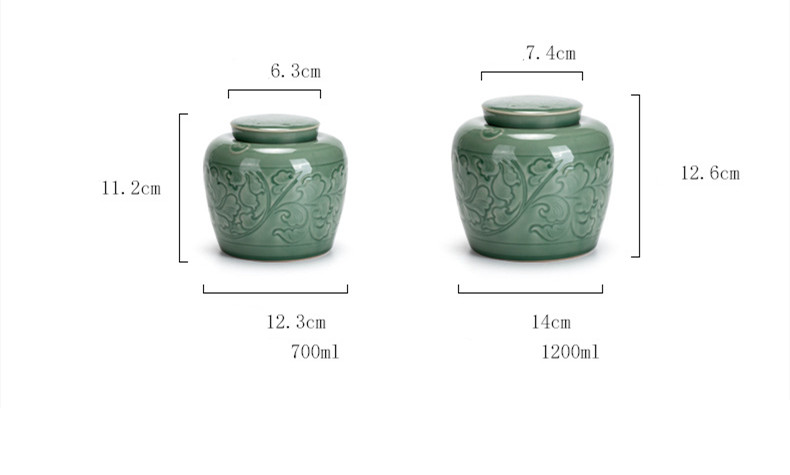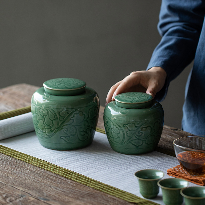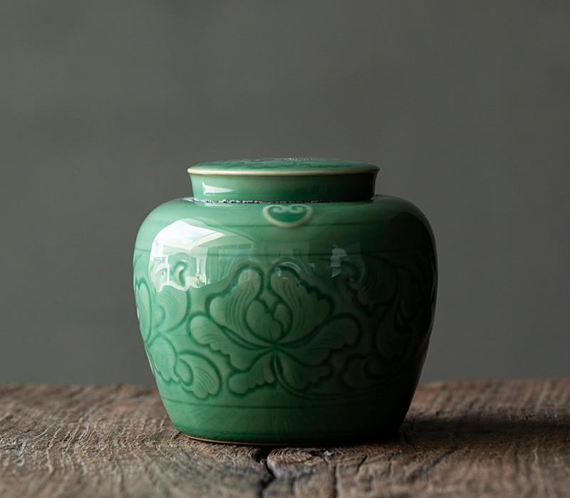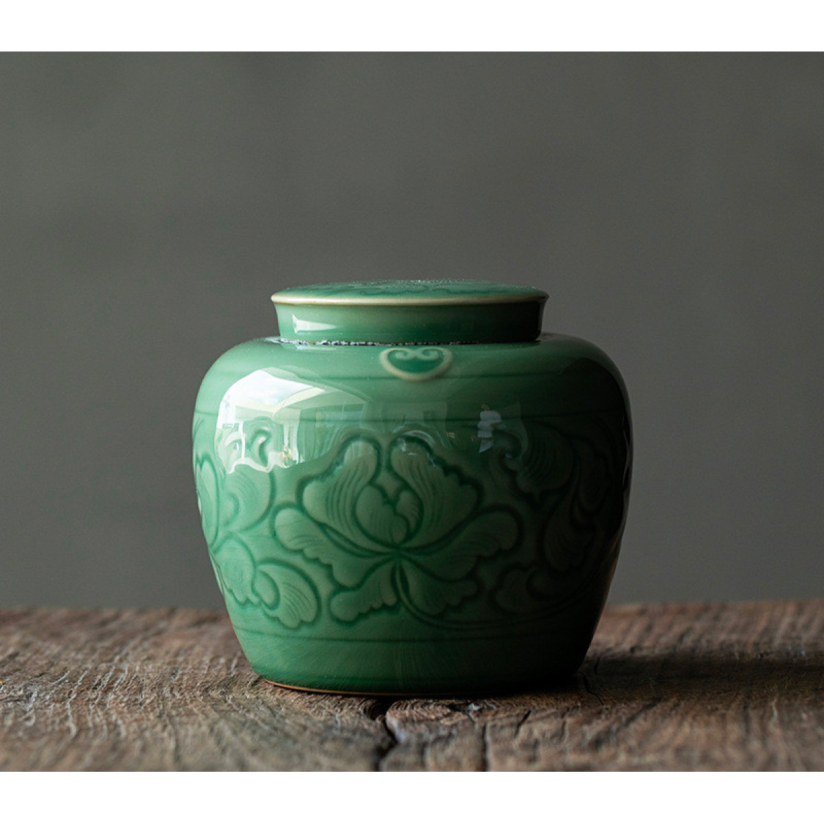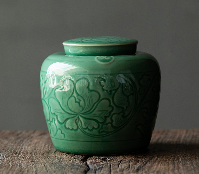Color: Yue Kiln Celadon Embossed Wrapped Tea Caddy-Large, Yue Kiln Celadon Embossed Wrapped Tea Caddy-Small