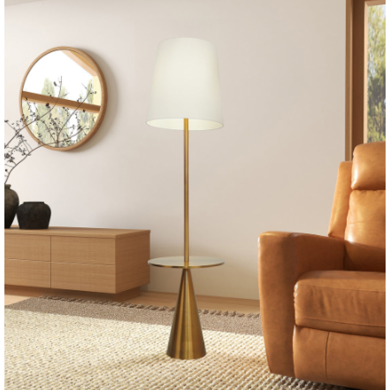 Product Name:Celestial Modern Floor Lamp with Brass Accent Table with Large White Shade