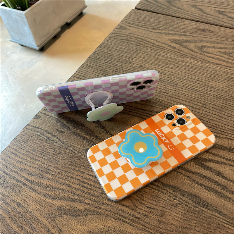 Color: white and orange grid pattern + blue flower bracket, white and purple grid pattern + green flower bracket