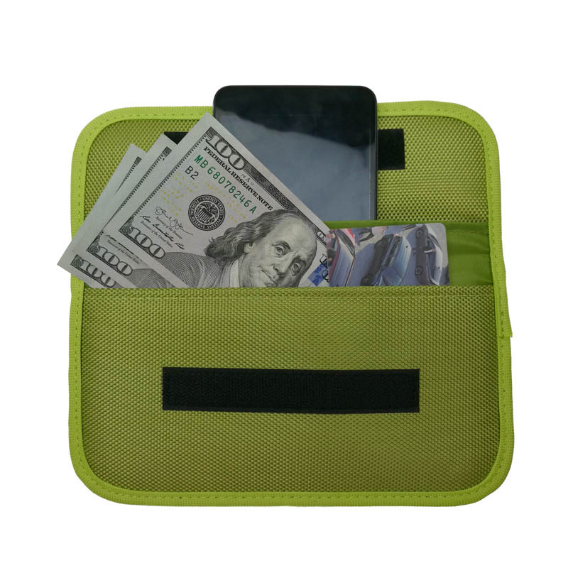 Put it in the inner pocket and seal the mouth of the bag. It can prevent electromagnetic radiation to protect human health. It can also shield electromagnetic wave signals and bank cards. Credit card ID cards.