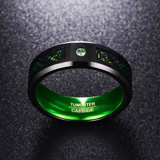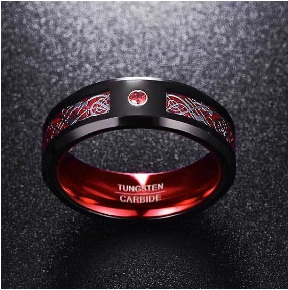 Name: Celtic Dragon Tungsten Carbide Rings With Carbon Fiber InlayWidth: 8mmMaterials: Tungsten Carbide, Carbon Fiber Inlay, Zircon Gem