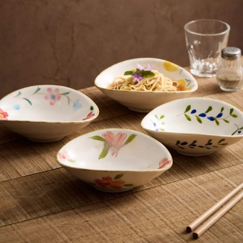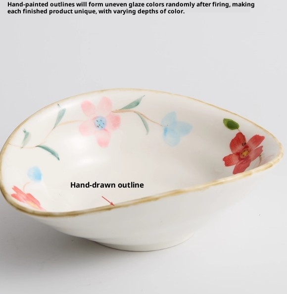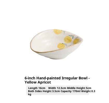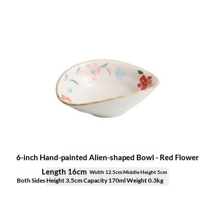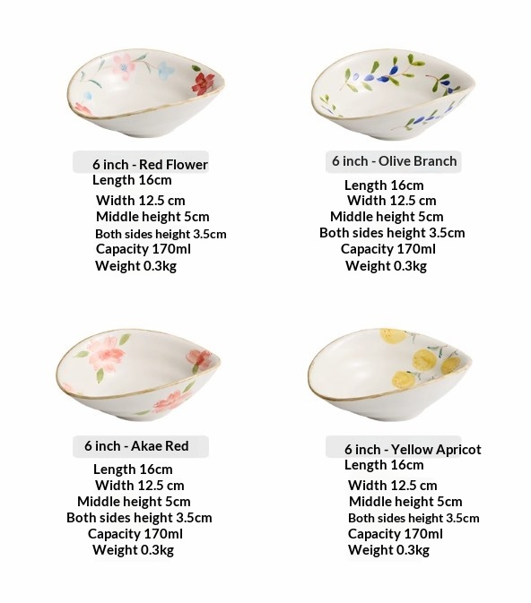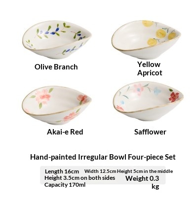 Color Variations: 6-inch Hand-Painted Irregular-Shaped Bowl - Apricot Yellow, 6-inch Hand-Painted Irregular-Shaped Bowl - Crimson Red, 6-inch Hand-Painted Irregular-Shaped Bowl - Olive Branch, 6-inch Hand-Painted Irregular-Shaped Bowl - Red Flower, 6-inch Hand-Painted Irregular-Shaped Bowl - Set of Four