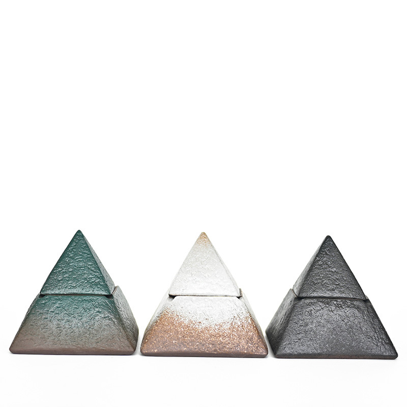 Ceramic Ashtray Pyramid Craft Decoration With Lid