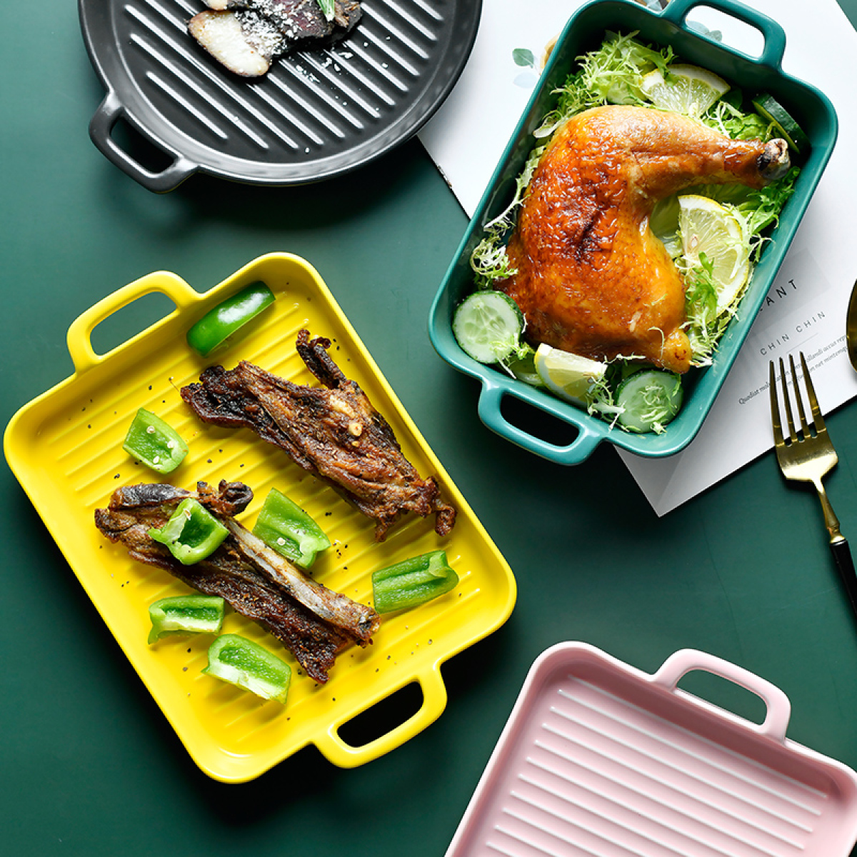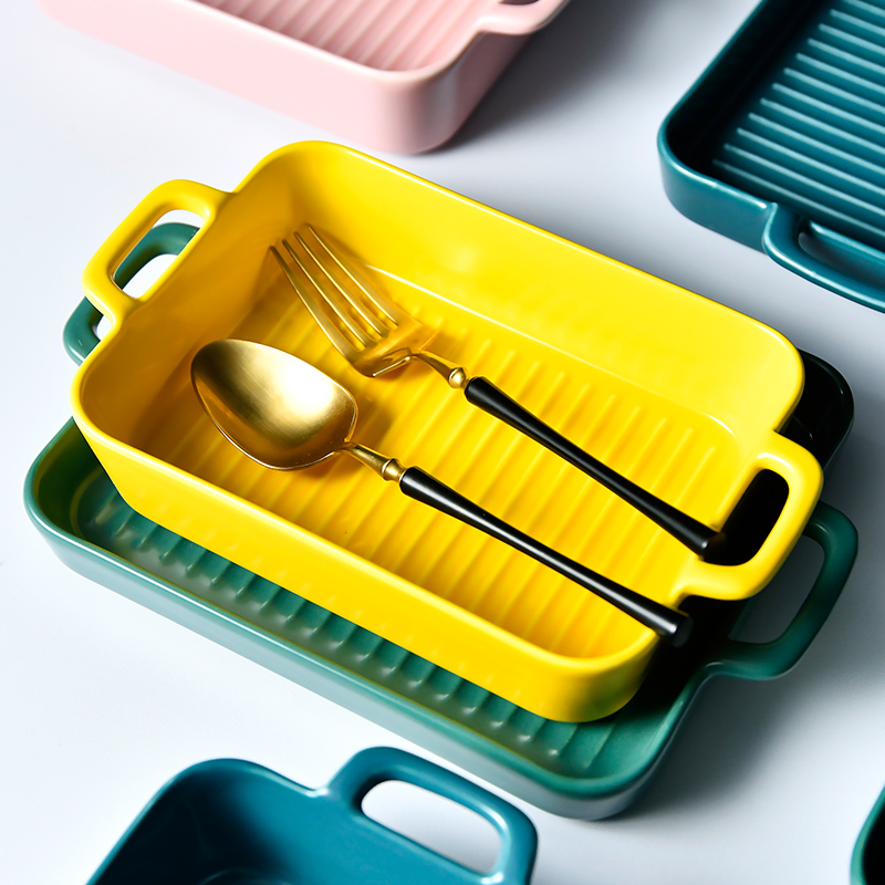 Name: Nordic binaural bakewareMaterial: CeramicProcess: UnderglazeStyle: simple European fashion