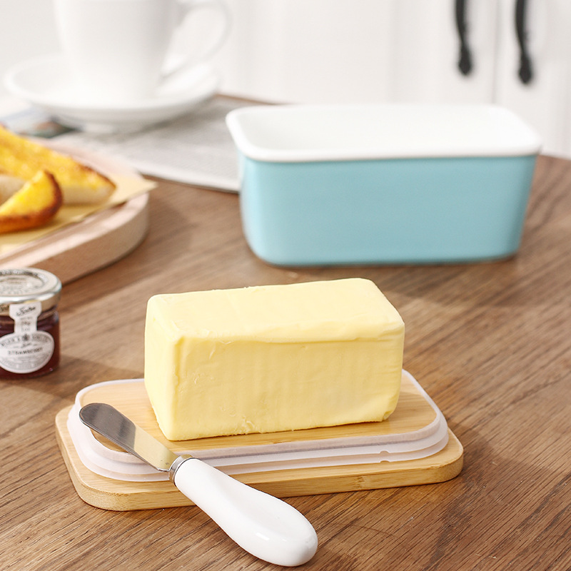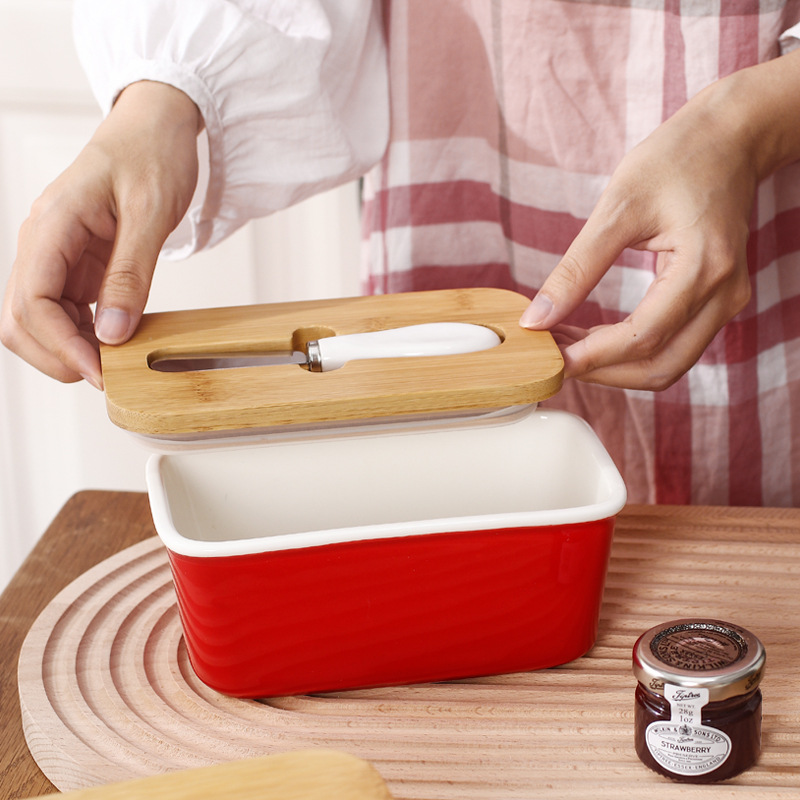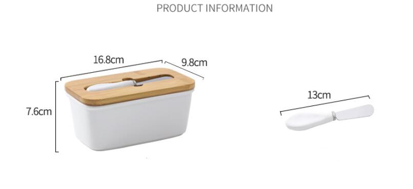 Ceramic Butter Box*1+wooden cover*1 + butter knife*1