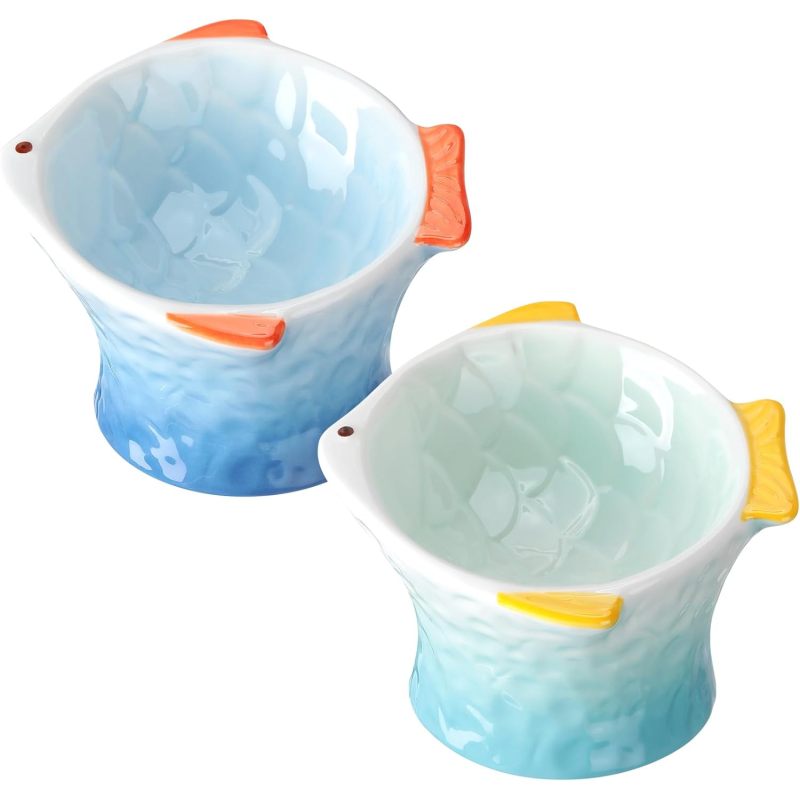 Package Content and Quality Material: there are pieces of fish shaped cat bowls in the package, which are crafted from quality ceramic and are long lasting and sturdy; The ceramic material makes them resistant to scratches, ensuring a reliable choice for everyday use; Besides, ceramic is a safe material for pet feeding, so these ceramic cat food bowls can provide a hygienic and safe option for feeding time