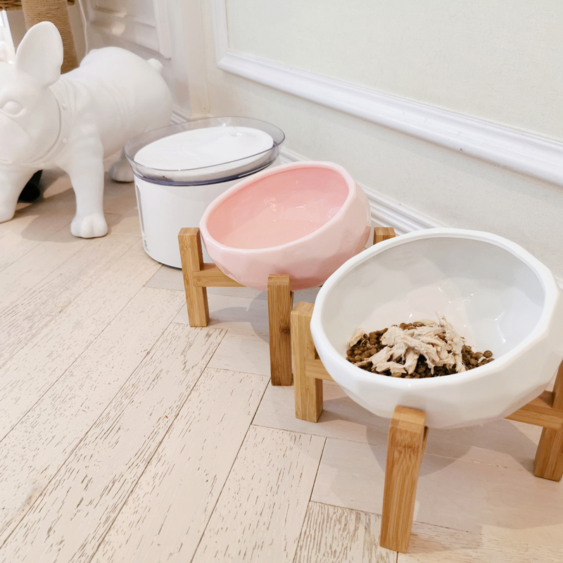 5style:[Diamond Style] Small White Bowl + Wooden Frame for Kittens or Mini Dogs