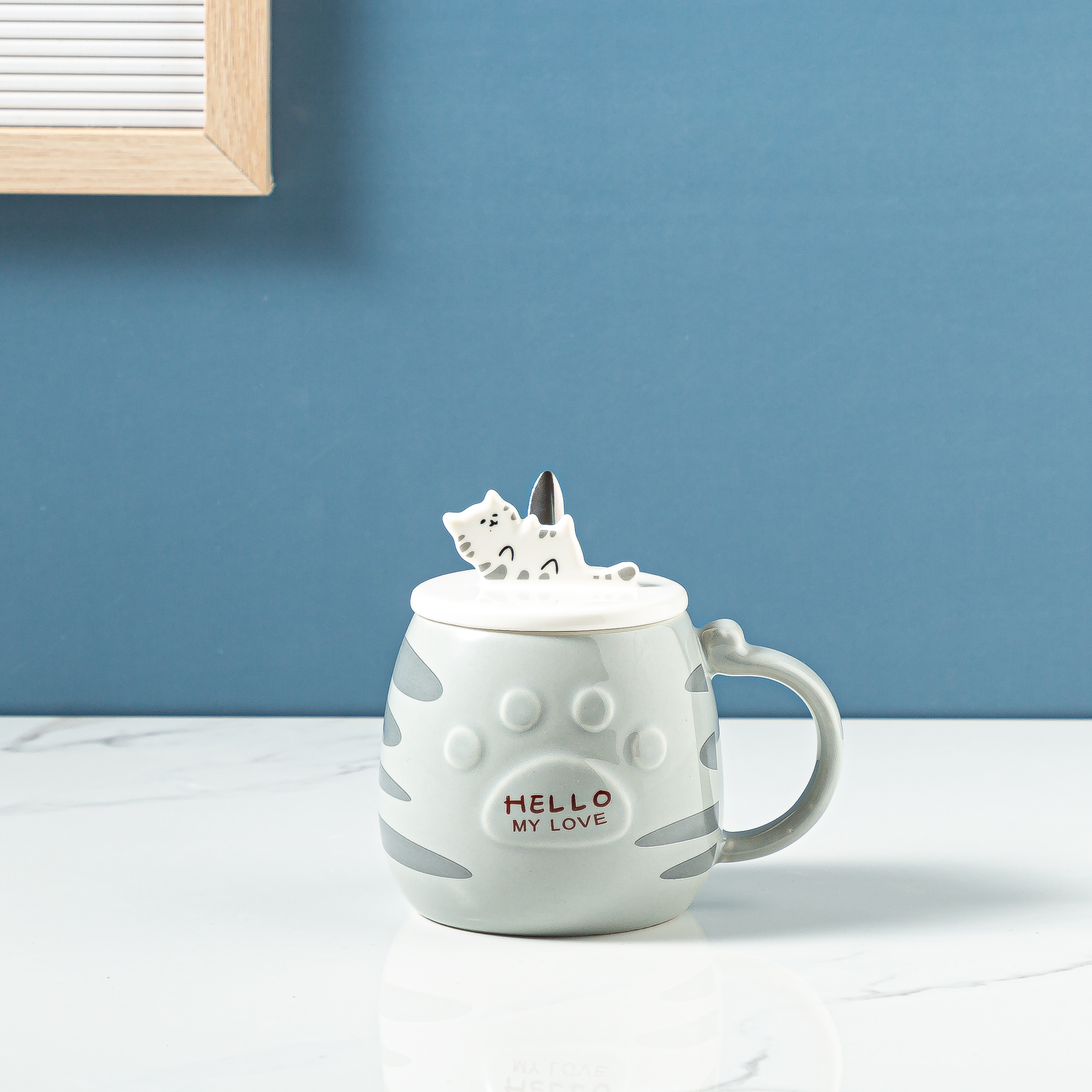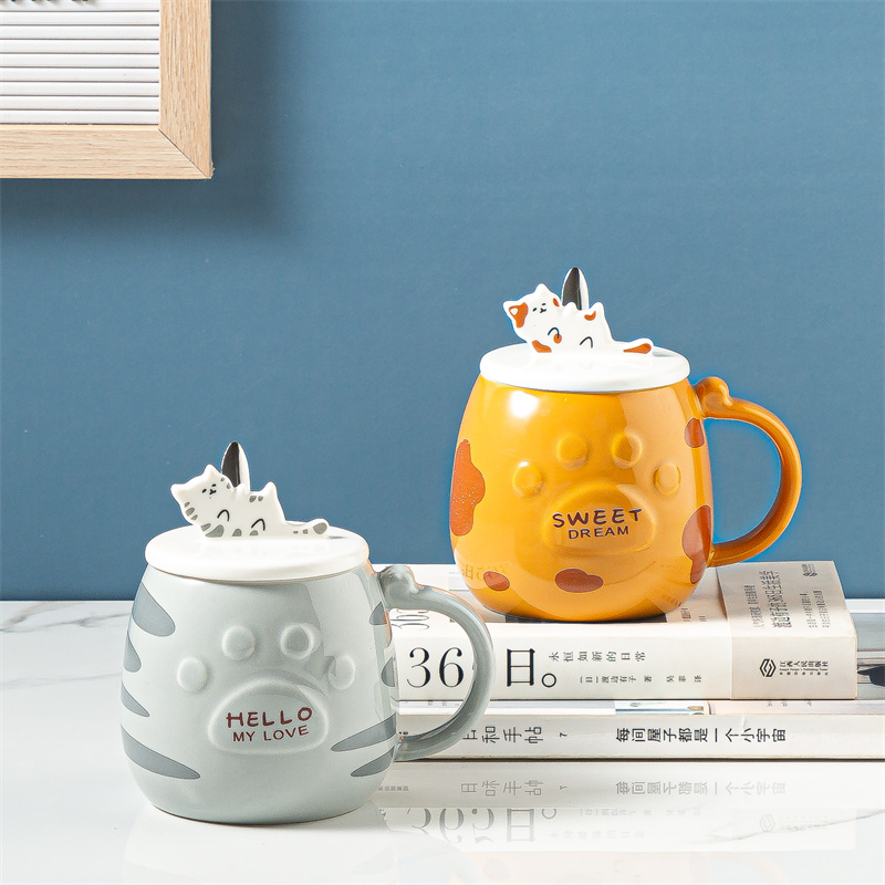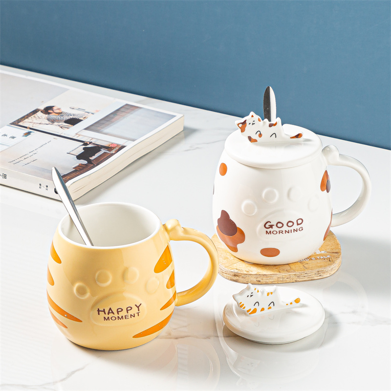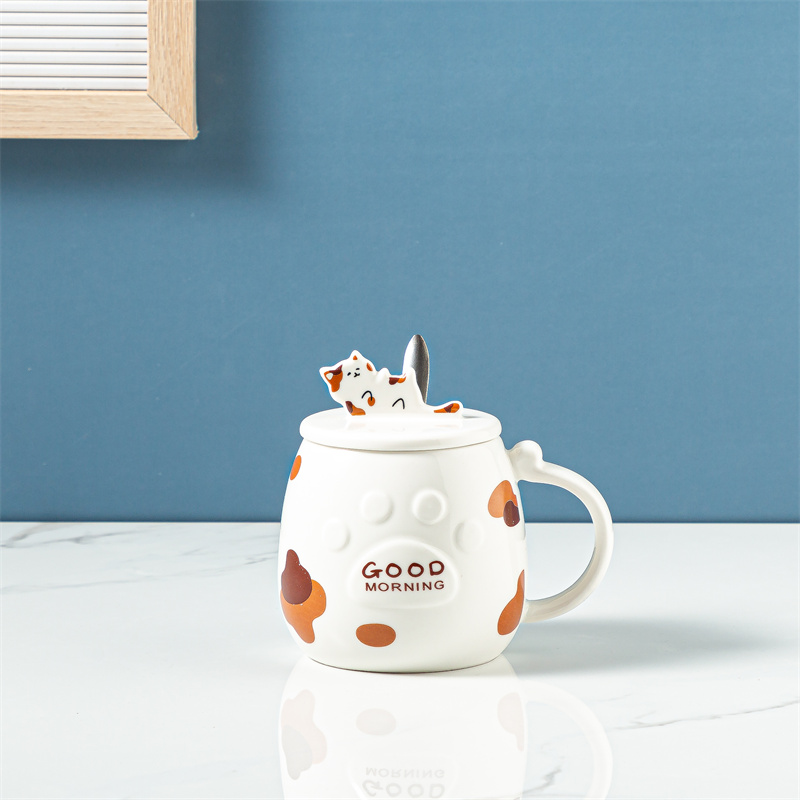 Ceramic Cat Mug With Lid Spoon Office Cute Coffee Mug