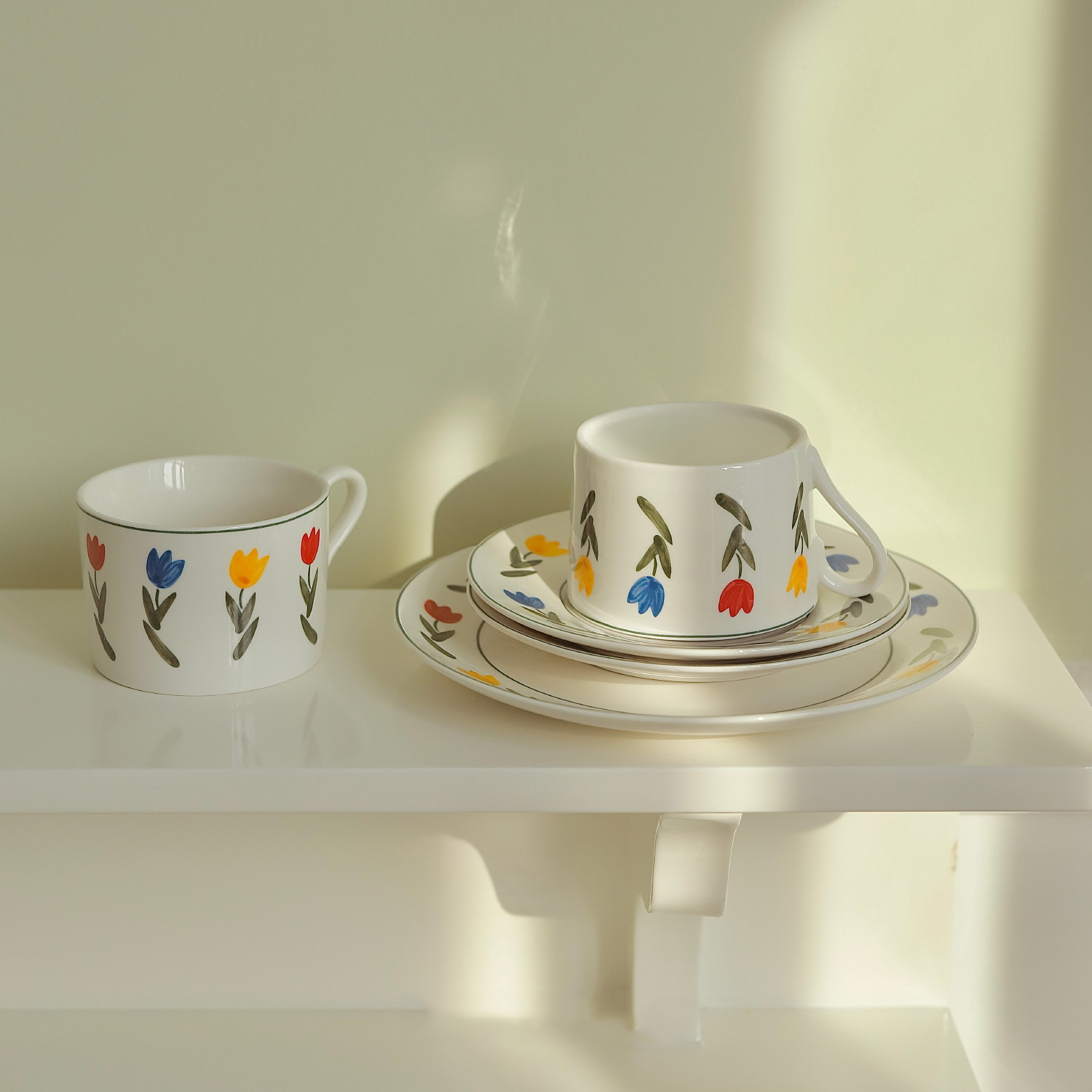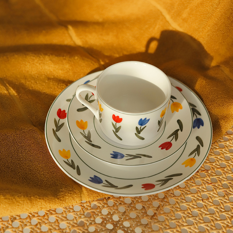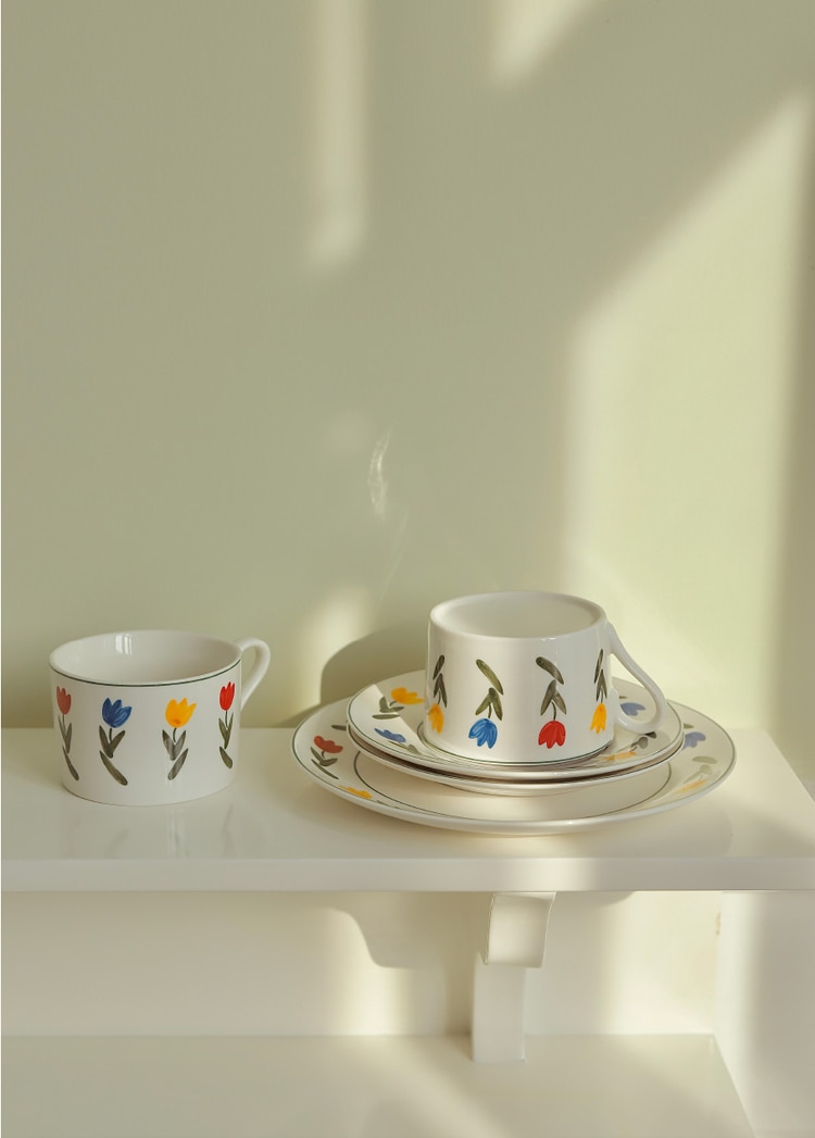 Size: cup and saucer: cup diameter 8.5cm, 200ml, height 6cm, saucer 15.5cm, mug diameter 8cm, height 9.5cm