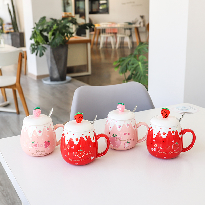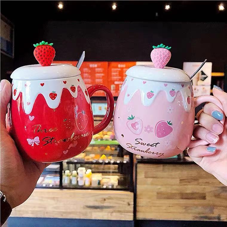 Color: Strawberry love in pink cup, one strawberry in red cup