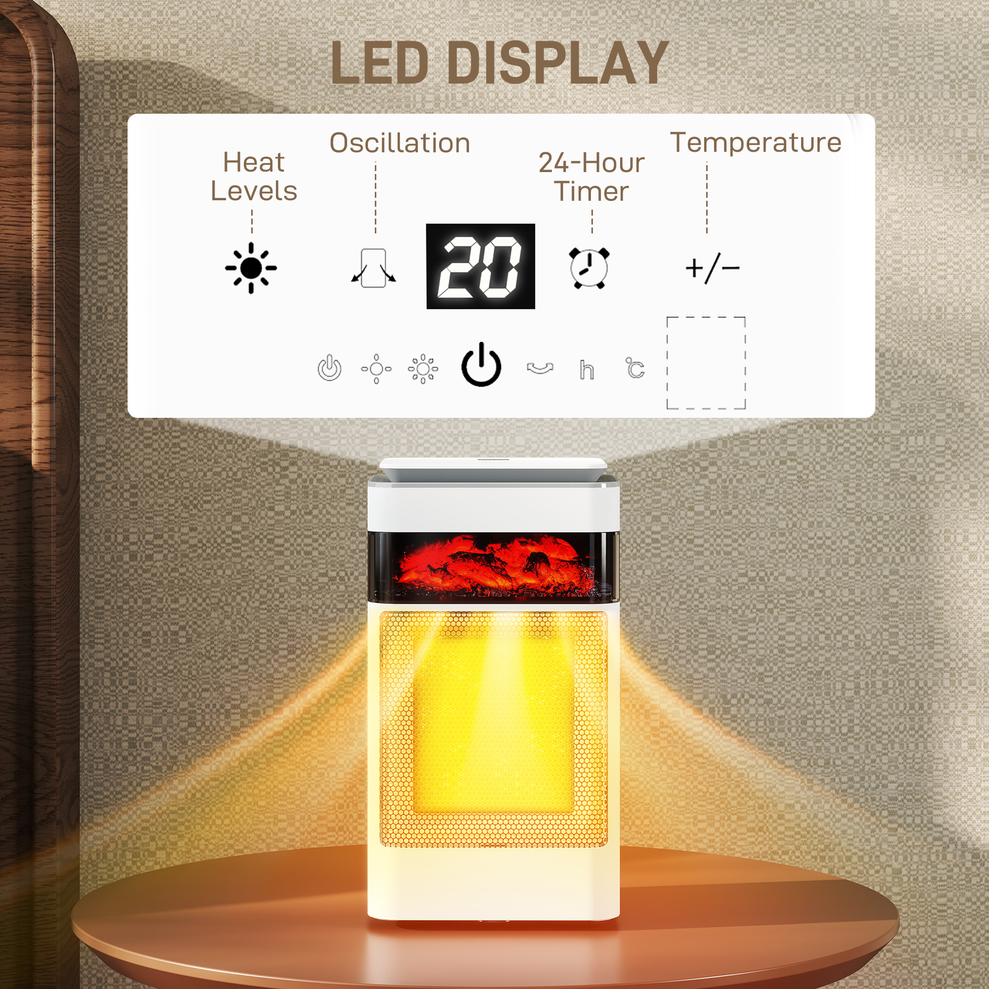 Tired of a cold room that lacks charm and raises safety worries? This electric heater transforms your space, offering instant warmth with a captivating flame effect for a cosy, fireplace-like feel. Relax completely, knowing that built-in overheat protection is keeping your family safe. It's more than just a space heater; it's your key to a warm, inviting and secure sanctuary from the cold.