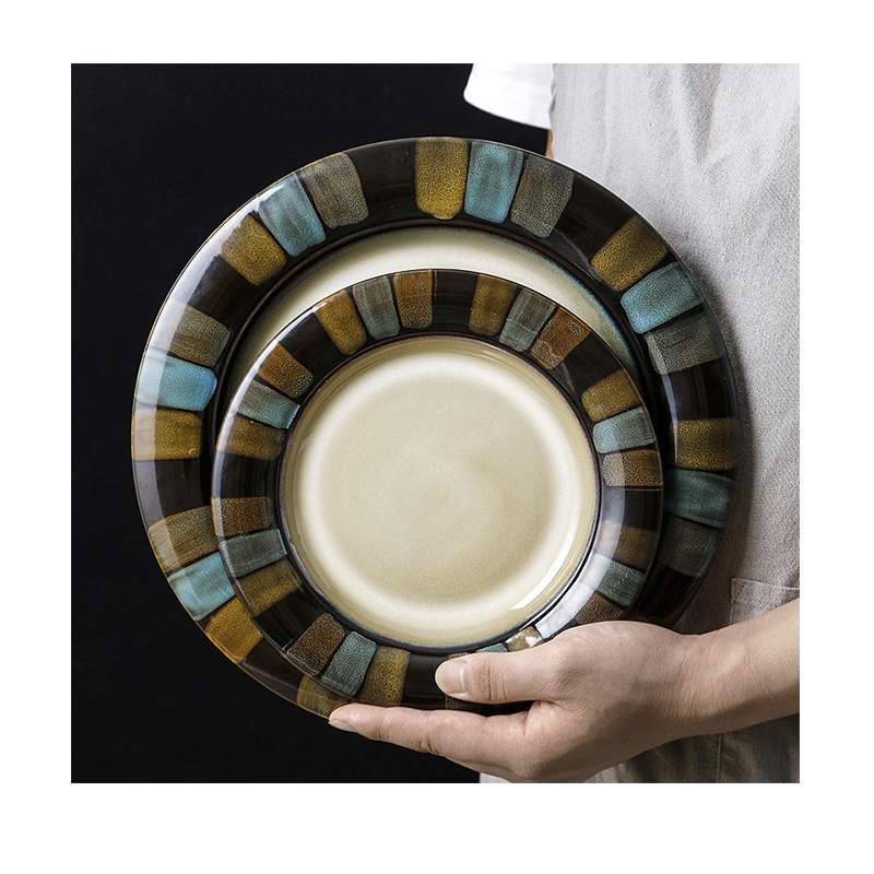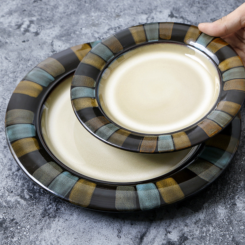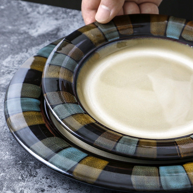 Color: Retro 7.8-inch plate with large lattice edge (20cm)